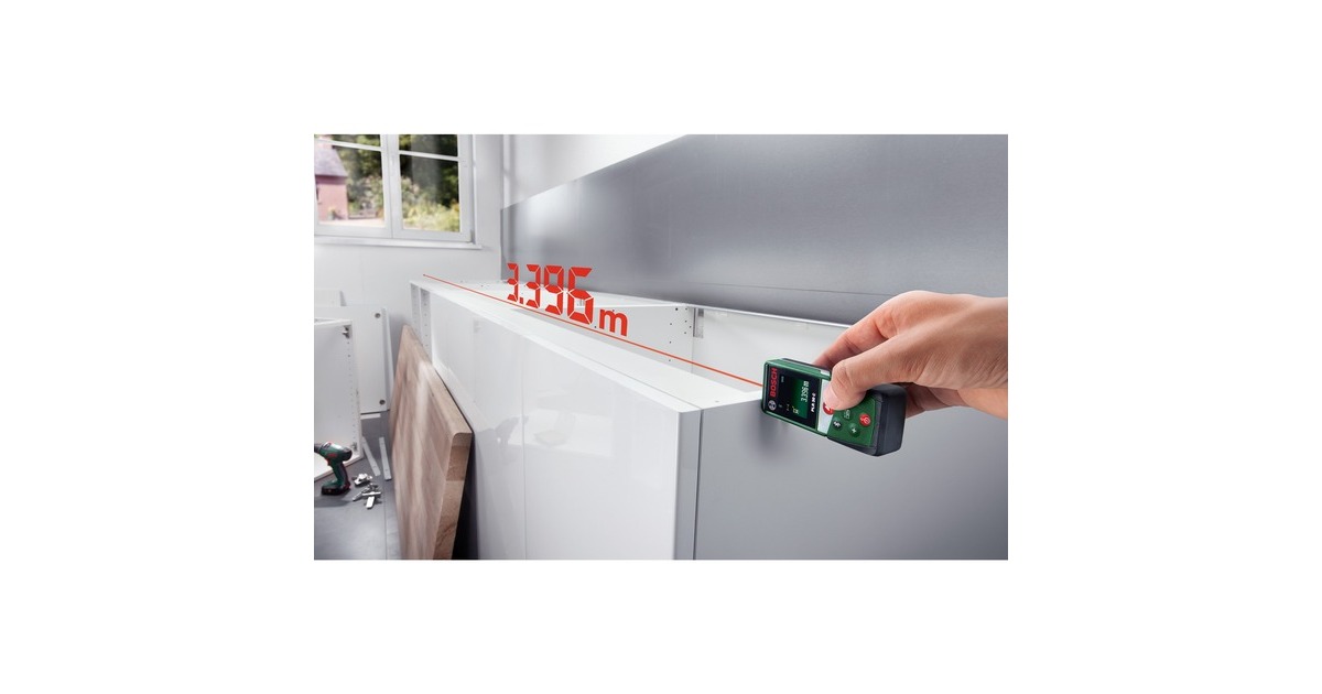 Der Laser-Entfernungsmesser PLR 30 C von Bosch ermöglicht smarte Messungen mit App-Konnektivität und Renovierungsplanung auf Knopfdruck. Der PLR 30 C misst Entfernungen bis zu 30 Meter mit Laserpräzision und kann die Größe von Möbeln blitzschnell erfassen. Nach Bedarf kann die Vorder- oder Hinterkante des Geräts als Ausgangspunkt der Messung gewählt werden. Er bietet integrierte Funktionen wie Flächen- und Volumenberechnungen, um zu bestimmen, wie viel Bodenbelag, Tapete oder Farbe eingekauft werden muss. Die Ergebnisse werden auf dem gut ablesbaren Farbdisplay angezeigt, und die Daten können zur bequemen Dokumentation per Bluetooth an die Bosch App gesendet werden. So können z.B. die Ergebnisse per App in die Raumfotos eingefügt werden.Art.-Nr.: 1824207