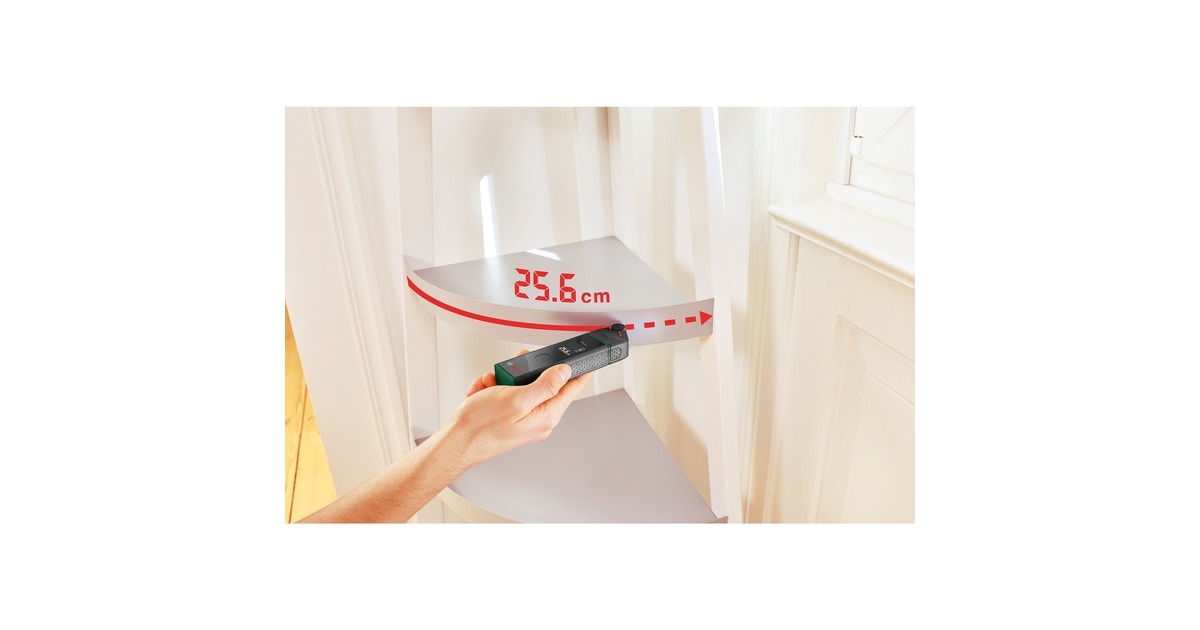 Der Laser-Entfernungsmesser Zamo III von Bosch ist die einfache Lösung zum Messen von Entfernungen, Längen, Höhen, Abständen, zum Berechnen von Flächen und zum Messen freistehender Objekte und unregelmäßiger Oberflächen. Die Quadratmeter-Funktion berechnet Flächen mit einem einfachem Doppelklick, durch Multiplizieren der letzten beiden Werte. Das ist perfekt, um schnell und einfach den Bedarf an Fußbodenbelag, Farbe oder Tapete zu ermitteln. Der Zamo III misst Entfernungen bis zu 20 Metern in Sekundenschnelle. Mit dem Zamo III werden auch drei praktische Adapter mitgeliefert: ein Radadapter zum Messen von Strecken zwischen zwei Punkten (z. B. Stofflänge), ein Bandadapter zum Messen von Umfängen (z.B. Vase, Rohr) und Längen freistehender Objekte (z.B. Fernseher, Regal) und ein Laserlinien-Adapter zum senkrechten oder waagerechten Ausrichten (z.B. Bilder).Art.-Nr.: 1824217