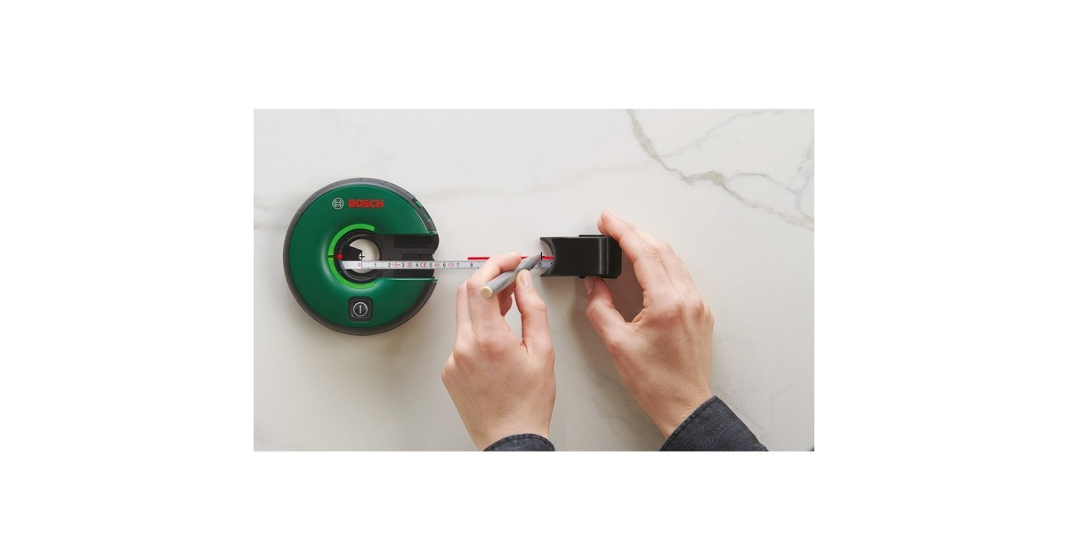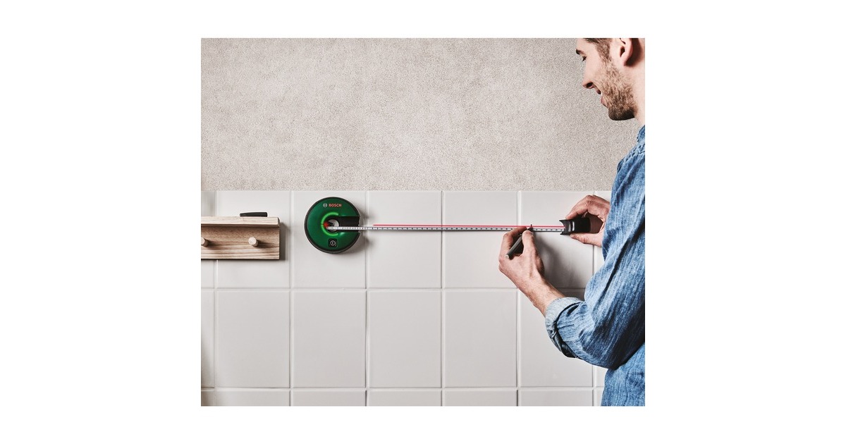 Der Linienlaser Atino von Bosch ermöglicht das Ausrichten von Bildern oder Regalen ohne Hilfe von anderen Personen. Er kombiniert alle wichtigen Funktionen eines Linienlasers mit einem integrierten 1,5 Meter Maßband. Der Atino kann mit dem innovativen Gelpad auf glatten unempfindlichen Oberflächen wie Fliesen, Beton oder Marmor befestigt werden. Bei rauen, verputzten Oberflächen oder Tapete ist die Pinplatte mit den zwei kleinen Pins die ideale Befestigungslösung. Der Linienlaser Atino eignet sich für verschiedenste Aufgaben, zum Ausrichten oder Aufhängen von Bildern und Regalborden, zum Befestigen von Haken und Handgriffen oder zum Anordnen von Gegenständen, der Atino ist alles, was man dazu braucht. Er ermöglicht das Ausrichten über eine intuitive LED-Anzeige und bietet eine Genauigkeit der sichtbaren Laserlinie von ± 0,3°. Die Laserlinie kann entweder waagerecht nach rechts (90°) bzw. links (270°) oder senkrecht nach oben (0°) bzw. unten (180°) einnivelliert werden. Der Nivellierungszustand wird durch den Leuchtring angezeigt.Art.-Nr.: 1824744