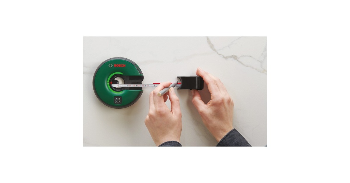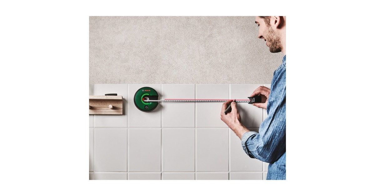 Der Linienlaser Atino von Bosch ermöglicht das Ausrichten von Bildern oder Regalen ohne Hilfe von anderen Personen. Er kombiniert alle wichtigen Funktionen eines Linienlasers mit einem integrierten 1,5 Meter Maßband. Der Atino kann mit dem innovativen Gelpad auf glatten unempfindlichen Oberflächen wie Fliesen, Beton oder Marmor befestigt werden. Bei rauen, verputzten Oberflächen oder Tapete ist die Pinplatte mit den zwei kleinen Pins die ideale Befestigungslösung. Der Linienlaser Atino eignet sich für verschiedenste Aufgaben, zum Ausrichten oder Aufhängen von Bildern und Regalborden, zum Befestigen von Haken und Handgriffen oder zum Anordnen von Gegenständen, der Atino ist alles, was man dazu braucht. Er ermöglicht das Ausrichten über eine intuitive LED-Anzeige und bietet eine Genauigkeit der sichtbaren Laserlinie von ± 0,3°. Die Laserlinie kann entweder waagerecht nach rechts (90°) bzw. links (270°) oder senkrecht nach oben (0°) bzw. unten (180°) einnivelliert werden. Der Nivellierungszustand wird durch den Leuchtring angezeigt.Art.-Nr.: 1824746