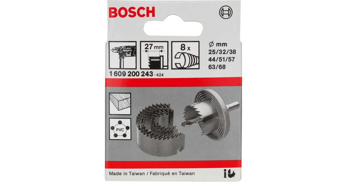 Das Sägekranz-Lochsägen-Set 1609200243 von Bosch eignet sich besonders zum Sägen von Löchern für Schalterdosen, zum Verlegen von Be- und Entlüftungsrohren oder für die Installation von Anschluss- und Schaltkästen. Die groben Schneidzähne erzielen einen schnellen Bohrfortschritt. Der Schaft ist fest mit dem Bohrkörper verbunden, das sorgt für Haltbarkeit und optimalen Rundlauf. Das Lochschneider-Set eignet sich für alle Akku-Bohrschrauber und kabelgebundenen Bohrmaschinen.Art.-Nr.: 1687029