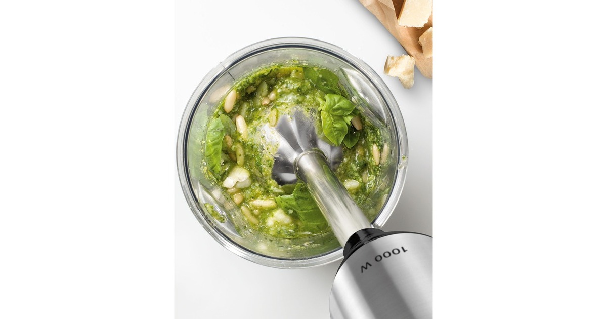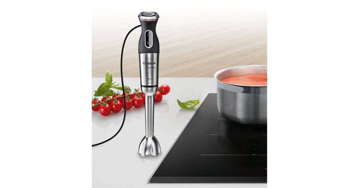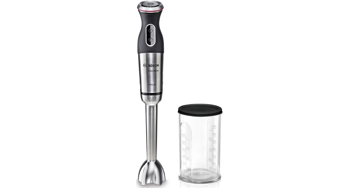 Das Stabmixer MaxoMixx MS8CM6110 bietet eine ideale Kombination aus Kraft und Kontrolle. Mit einer Leistung von 1000-Watt-Leistung und zwölf Geschwindigkeitsstufen zerkleinert, mixt und verrührt der MaxoMixx Lebensmittel im Handumdrehen. Die ergonomische Formgebung und die rutschfeste Soft-Touch-Oberfläche des MS8CM6110 sorgen für eine optimale Handhabung. Der Mixfuß ist mit einer Bosch QuattroBlade Pro mit Anti-Saug-Technolgie ausgestattet. So lässt sich effizient Mixen ohne Unterbrechungen oder Spritzer. Ein patentierter "Klick-Mechanismus" sorgt für ein hörbares Verrasten und leichtes Lösen von Mixfuß und Zubehören.Art.-Nr.: 1572587