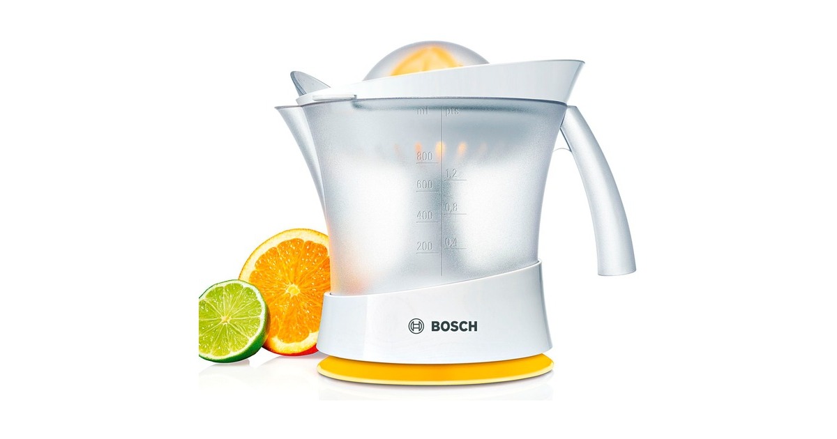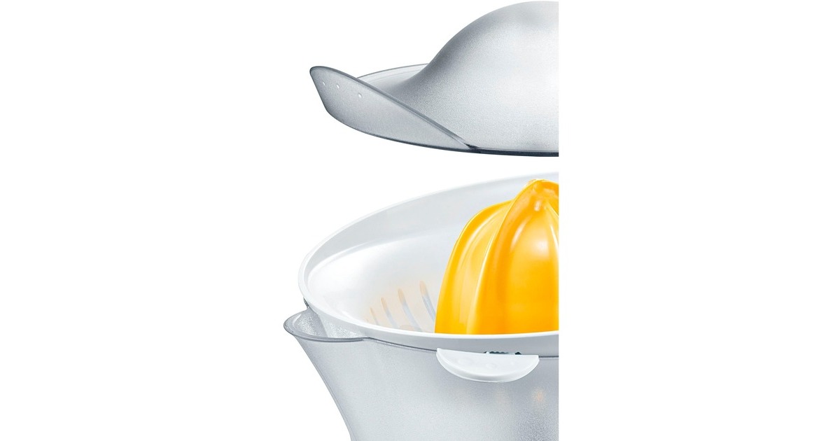 Die Zitruspresse Bosch MCP 3500N ist einfach zu bedienen und zaubert im Handumdrehen aus Orangen, Mandarinen, Grapefruit und Limetten einen vitaminreichen Saft. Bei Druck auf den Presskegel beginnt automatisch ein Links- sowie Rechtslauf des Presskegels und der gewonnene Saft wird direkt in einem Saftbehälter mit 0,8 Litern Volumen gesammelt. Für eine einfache Reinigung sorgen der abnehmbare Saftbehälter sowie spülmaschinenfeste Zubehörteile.Art.-Nr.: 1497603