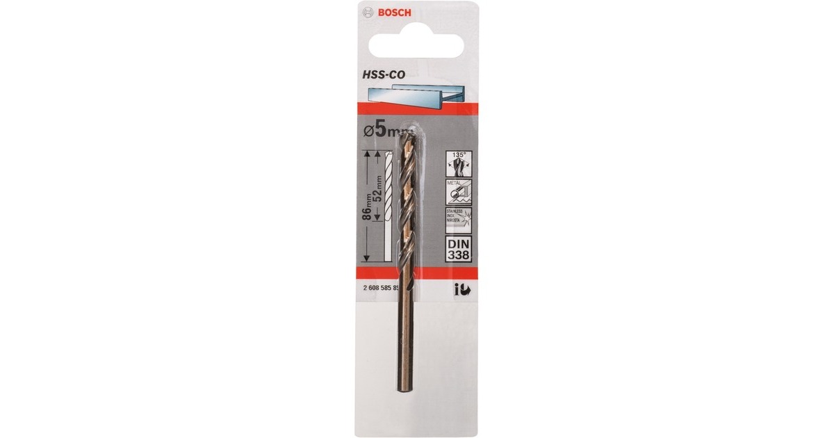 Der Bosch HSS-Co Spiralbohrer 2608585851 hat beim Bohren von rostfreiem Stahl eine lange Lebensdauer. Dafür sorgen die Metalllegierung mit 5% Cobaltgehalt und der aus dem Vollen geschliffene HSS-Stahl mit ausgezeichneter Oberflächengüte, Verschleißfestigkeit und Hitzeschutz. Die zwei Schneidekanten und zwei Spiralnuten entfernen die Bohrspäne schnell und verlängern damit zusätzlich die Lebensdauer. Der HSS-Co Spiralbohrer bohrt legierten und unlegierten Stahl, rostfreien Stahl, Gusseisen, Gussstahl sowie säure- und hitzebeständigen Stahl. Die Bohrspitze mit Kreuzanschliff ermöglicht dabei einen aktiven Bohransatz und perfektes Zentrieren ohne Wandern. Der Schaft ist zylindrisch (der Schaftdurchmesser entspricht dem Bohrerdurchmesser). Er wird mit z.B. Bohrständern und Bohrschraubern verwendet. Er ist mit zylindrischen Bohrfuttern für kabelgebundene oder akkubetriebene Bohrmaschinen kompatibel.Art.-Nr.: 1673063
