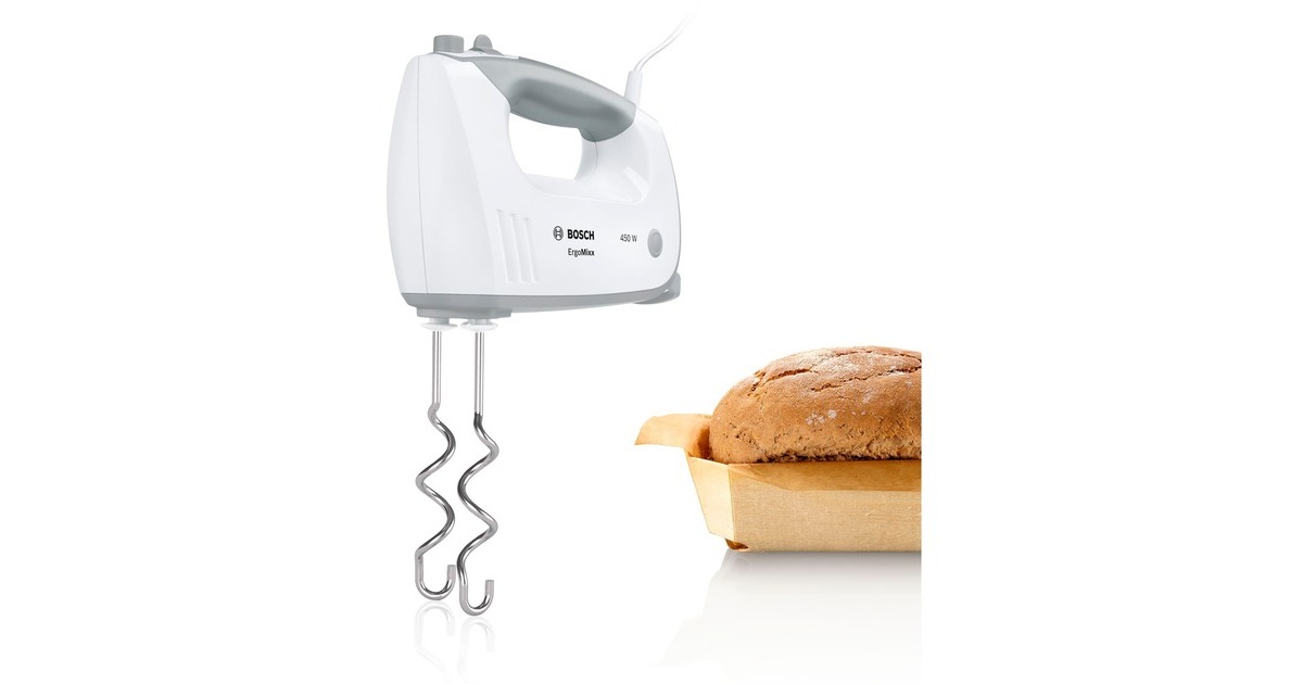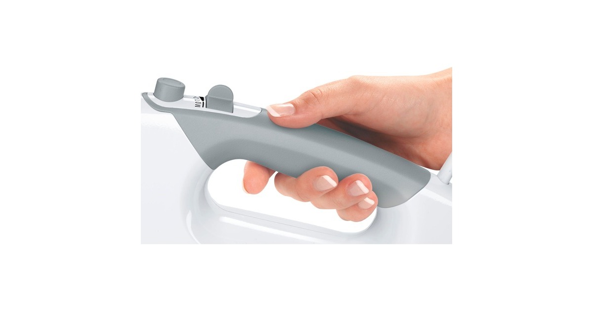 Der Bosch Handrührer MFQ36440 wird mit zwei Turbobesen, zwei stabilen Knethaken, einem Kunststoff-Mixfuss und einem skalierten Mixbecher mit Deckel geliefert. Über einen Schieberegler lassen sich an dem Handrührer fünf unterschiedliche Geschwindigkeitsstufen einstellen. Um bei hartnäckigen Teigen nicht nachzugeben hat der Handrührer noch eine zusätzliche Moment-/Turbo-Stufe. Die hocheffizienten Turbobesen sorgen für ein optimales Schlag- bzw. Rührergebnis und die Knethaken für eine einfache Zubereitung von Hefe oder Brotteig. Der temperaturbeständige Kunststoff-Mixfuss mit 4-Klingen-Edelstahlmesser und der skalierte-Mixbecher eignen sich zum Zerkleinern und Pürieren von Speisen. Der MFQ36440 liegt optimal in der Hand und ermöglicht dank seines geringen Gewichts angenehmes und entspanntes Arbeiten. Zudem ist das Gerät besonders leise.Art.-Nr.: 1333889
