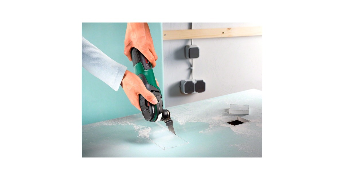 Dieses Set besteht aus dem Bosch Multifunktions-Werkzeug PMF 350 CES und einem kleinen Set Starlock Einsatzwerkzeuge zum Schleifen und Sägen. Das oszillierende Multifunktions-Werkzeug PMF 350 CES ist ein vielseitiger, leistungsstarker Helfer bei allen Renovierungs- und Ausbesserungsarbeiten. Der leistungsstarke 350-Watt-Motor mit Bosch Constant Electronic und die stufenlose Vorwahl der Schwingzahl ermöglichen ein zügiges Arbeiten und eine optimale Abstimmung auf das Material. Das innovative 180°-Lichtband sorgt für ein gleichmäßiges, blendarmes Licht und macht den Arbeitsbereich heller. Es ist die ideale Lösung für Arbeiten in Hohlräumen, in Ecken oder in Situationen mit schlechter Beleuchtung. Mit der Starlock-Werkzeugaufnahme und einer Vielzahl an separat erhältlichen Zubehören ist das PMF 350 CES äußerst flexibel. Das Bosch MagnetHold-System, eine magnetische Werkzeugaufnahme, hilft beim mühelosen Wechseln der Zubehöre, und ein Staubabsaugvorsatz hilft dabei, den Arbeitsbereich sauber zu halten.Art.-Nr.: 1619123