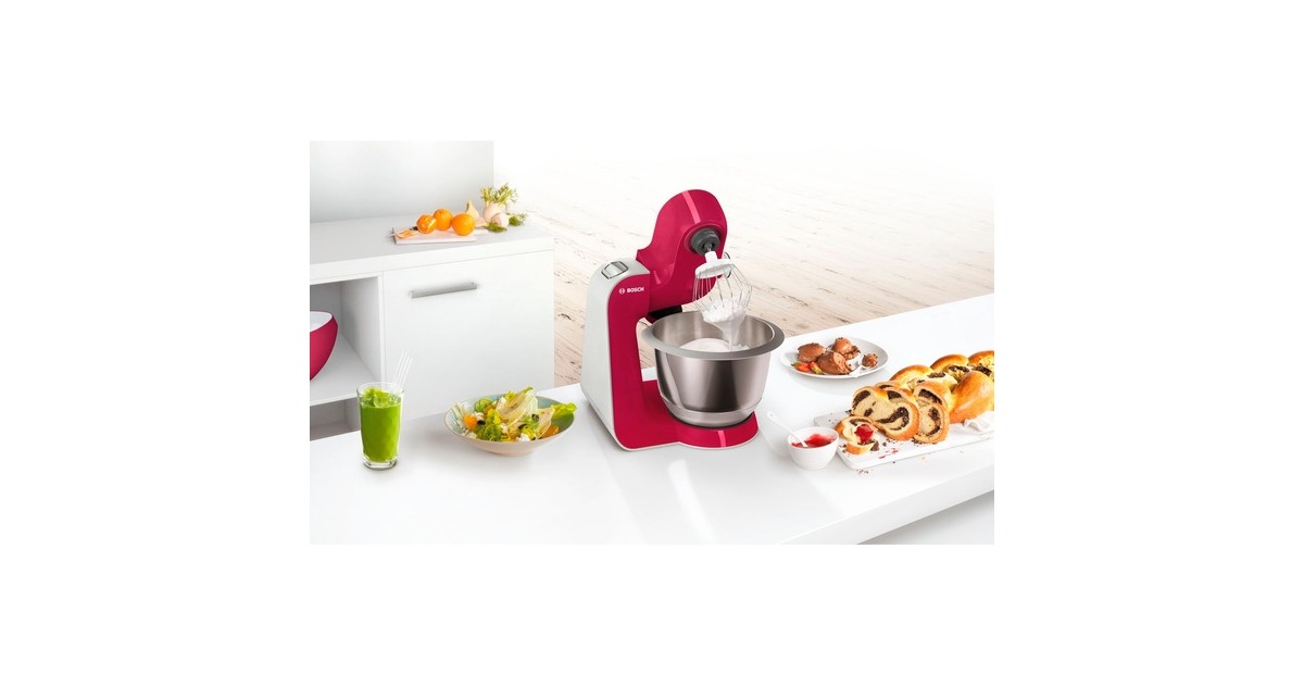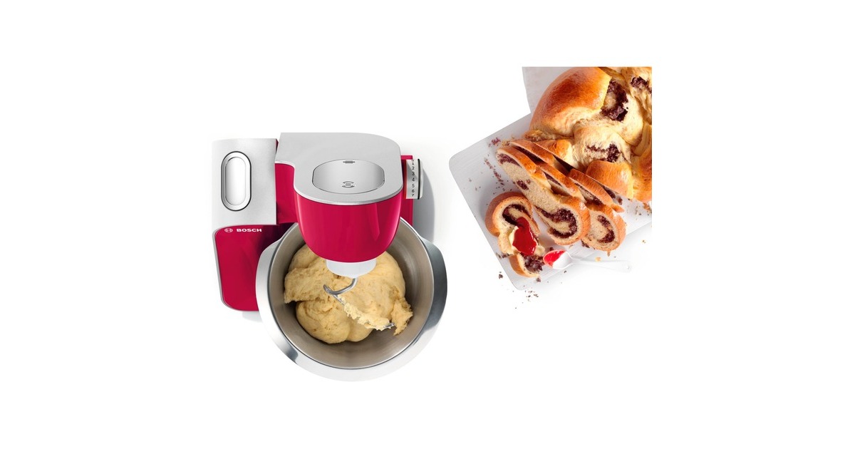 Die Universal-Küchenmaschine Bosch MUM 58420, in der Farbe Rot, ist die richtige Küchenmaschine für erste beeindruckende Koch- und Backergebnisse. Durch das hochwertige Patisserie-Set, welches sich in der mitgelieferten Zubehörtasche verstauen lässt, macht Backen richtig Spaß. Bei der schnellen und komfortablen Verarbeitung großer Mengen und anspruchsvoller Teige läuft der 1000 Watt starke Motor zu seiner Höchstform auf. Er überzeugt dabei durch eine perfekte Performance sowie beste Resultate. Die MUM 58420 besitzt eine Edelstahl-Rührschüssel für maximal 2,7 kg Rührteig oder 1,9 kg Hefeteig. Durch das umfangreiche Zubehör ist die MUM 58420 auch anderen Herausforderungen gewachsen. Mühelos schneidet, raspelt oder mixt sie verschiedene Lebensmittel. In punkto Sicherheit glänzt sie mit einem Überlastungsschutz, einer Wiedereinschaltsicherung und rutschfesten Gummifüßen für einen sicheren Stand auf der Arbeitsfläche.Art.-Nr.: 1360152