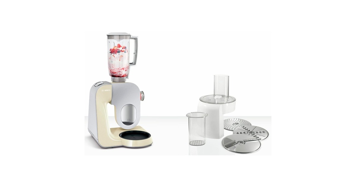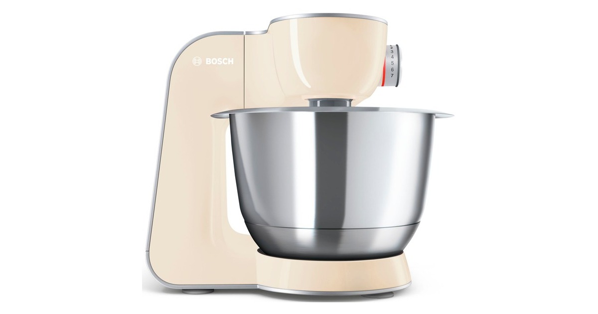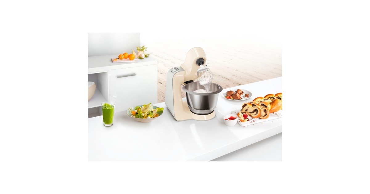 Die Universal-Küchenmaschine Bosch MUM 58920, in der Farbe Creme, ist die richtige Küchenmaschine für erste beeindruckende Koch- und Backergebnisse. Durch das hochwertige Patisserie-Set, welches sich in der mitgelieferten Zubehörtasche verstauen lässt, macht Backen richtig Spaß. Bei der schnellen und komfortablen Verarbeitung großer Mengen und anspruchsvoller Teige läuft der 1000 Watt starke Motor zu seiner Höchstform auf. Er überzeugt dabei durch eine perfekte Performance sowie beste Resultate. Die MUM 58920 besitzt eine Edelstahl-Rührschüssel für maximal 2,7 kg Rührteig oder 1,9 kg Hefeteig. Durch das umfangreiche Zubehör ist die MUM 58920 auch anderen Herausforderungen gewachsen. Mühelos schneidet, raspelt oder mixt sie verschiedene Lebensmittel. In punkto Sicherheit glänzt sie mit einem Überlastungsschutz, einer Wiedereinschaltsicherung und rutschfesten Gummifüßen für einen sicheren Stand auf der Arbeitsfläche.Art.-Nr.: 1360149