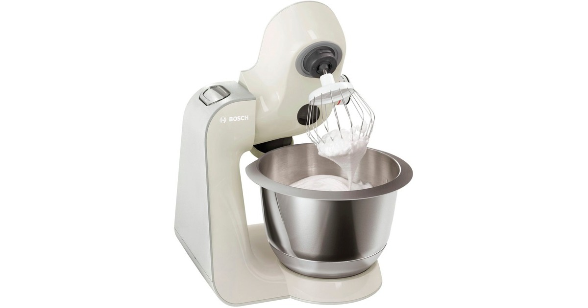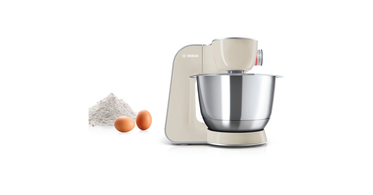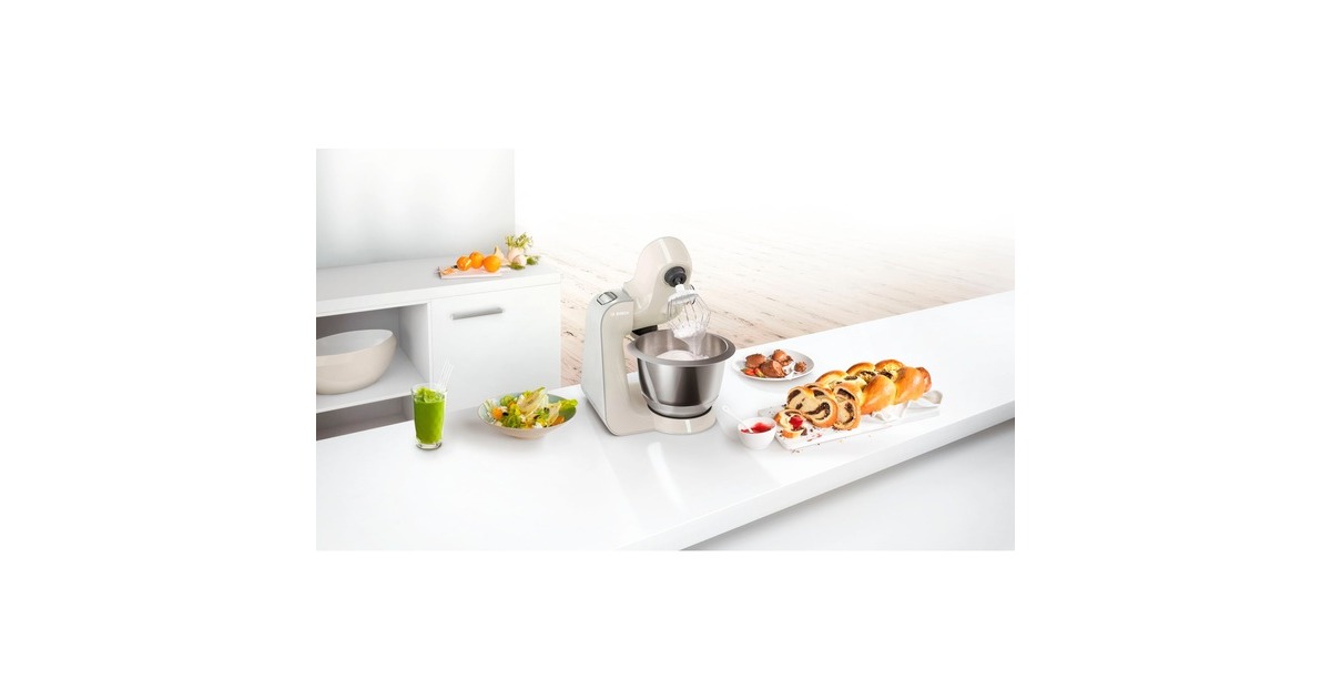 Die Bosch Universal-Küchenmaschine MUM58L20 erleichtert häufiges Kochen und Backen. Sie sorgt für eine besonders einfache Verarbeitung - auch von großen Mengen von bis zu 1 kg Mehl plus Zutaten - dank kraftvollem Motor mit 1.000 Watt. Teige werden in der großen Edelstahl-Rührschüssel (3,9l Volumen) mit spezieller Innenform Dank 3D PlanetaryMixing optimal vermengt - für bis zu 2,7 kg Rührteig / 1,9 kg Hefeteig. Komfortable Bedienung mit EasyArmLift und einfache Befüllung der Schüssel dank automatischer Parkposition der Rührwerkzeuge sind nützliche Features der Universal-Küchenmaschine MUM58L20. Die MUM58L20 ist vielseitig einsetzbar. Mit der praktischen Zubehörtasche kann das Patisserie-Set platzsparend in der Schüssel verstaut werden.Art.-Nr.: 1296772