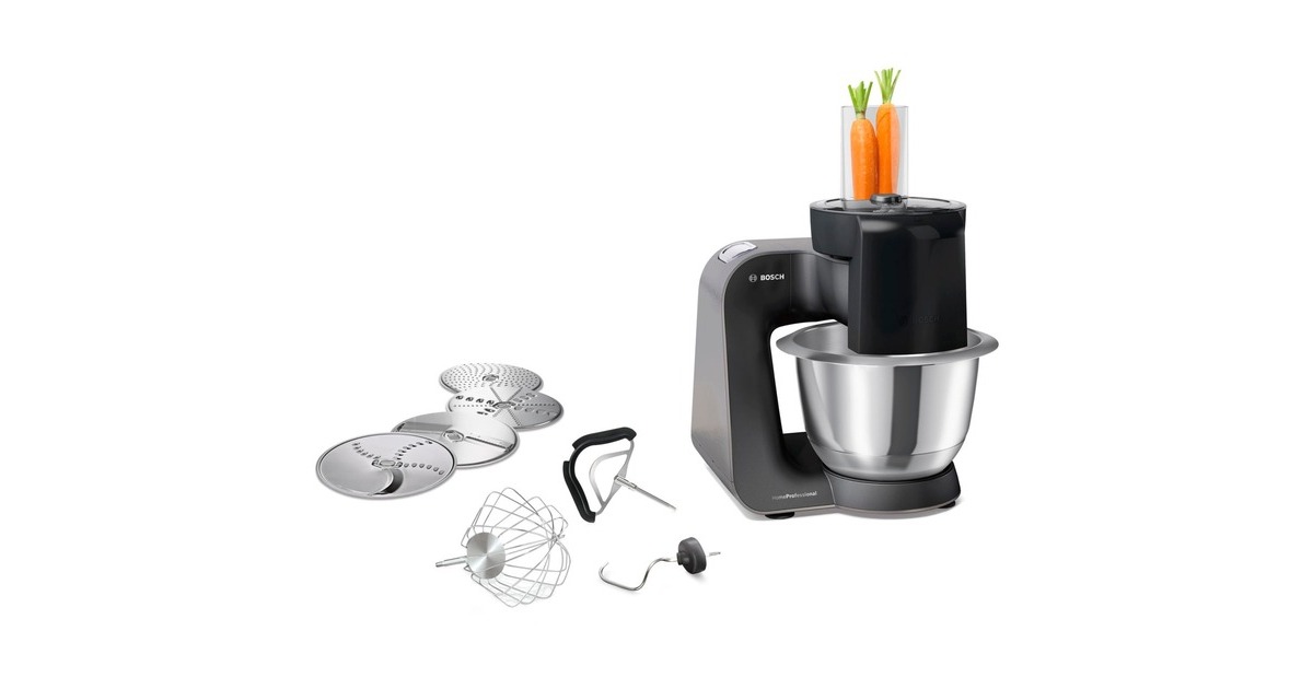 1 x Raspelwendescheibe, 1 x Reibscheibe mittelfein, 1 x Schneid-Raspel-Wendescheibe, 1 x transparenter Deckel mit Einfüllöffnung, 1 x Durchlaufschnitzler, 1 x Edelstahl-Rührschüssel, 1 x Knethaken Metall, 1 x Profi Supercut Wendescheibe, 1 x Profi Schlagbesen, 1 x Profi Flexi- Rührbesen, 1 x Zubehörtasche rot; Booklet mit Gourmet Rezepten |