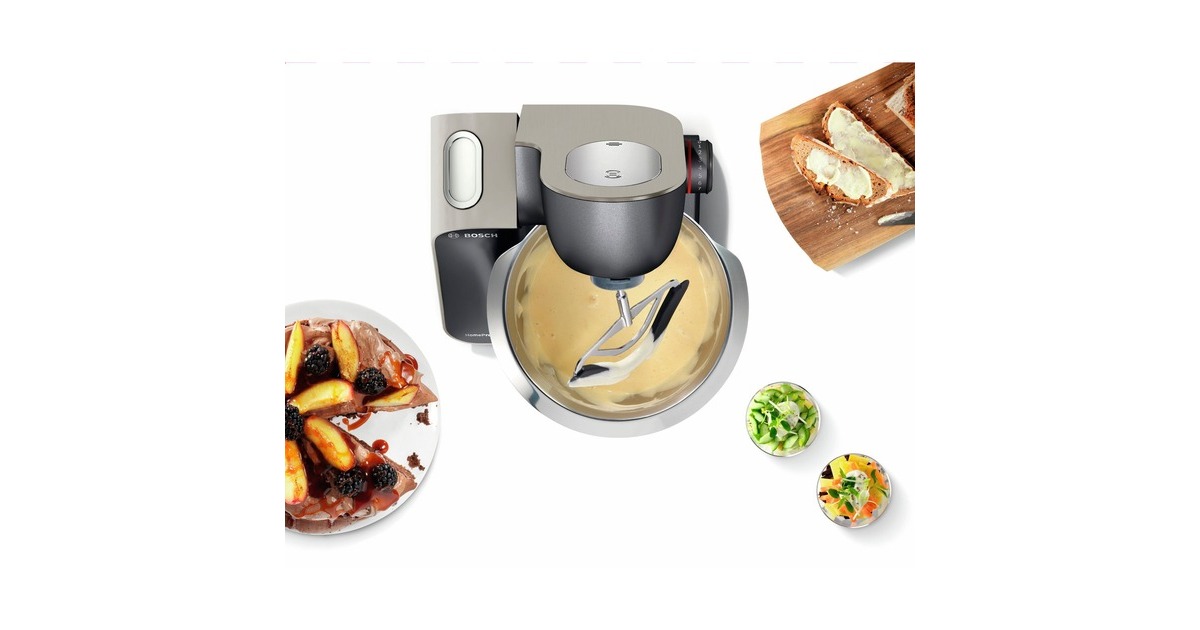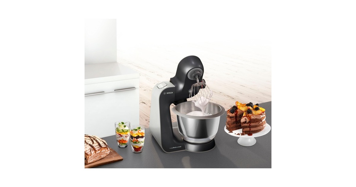 Die Bosch Universal-Küchenmaschine MUM59N26DE erleichtert häufiges Kochen und Backen. Sie sorgt für eine besonders einfache Verarbeitung - auch von großen Mengen - dank kraftvollem Motor mit 1.000 Watt. Teige werden in der großen Edelstahl-Rührschüssel (3,9 Liter Volumen) mit spezieller Innenform Dank 3D PlanetaryMixing optimal vermengt - für bis zu 2,7 kg Rührteig/1,9 kg Hefeteig. Komfortable Bedienung mit EasyArmLift und einfache Befüllung der Schüssel dank automatischer Parkposition der Rührwerkzeuge sind nützliche Features der Universal-Küchenmaschine MUM59N26DE. Die MUM59N26DE ist vielseitig einsetzbar mit Profi-Patisserie-Set (Rührbesen mit Silikon, Vollmetall–Schlagbesen, Knethaken) und Durchlaufschnitzler mit 4 Edelstahlscheiben. Mit der praktischen Zubehörtasche kann das Patisserie-Set platzsparend in der Schüssel verstaut werden.Art.-Nr.: 1293268