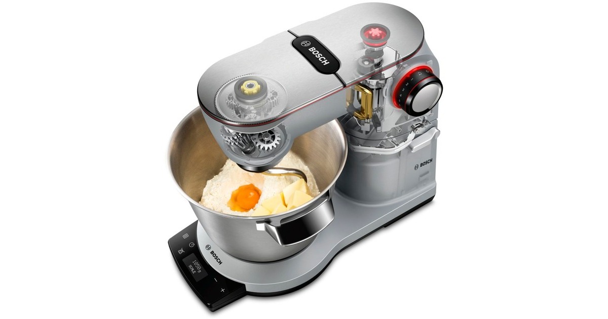 Die OptiMUM MUM9AX5S00 ist eine neue vielseitige Premium-Küchenmaschine in platinum silver von Bosch. Sie begeistert nicht nur durch attraktives Design, sondern ist auch die bedienerfreundlichste Küchenmaschine von Bosch. Besonders praktisch ist die integrierte Waage, um Zutaten direkt in der Schüssel abzuwiegen. Auch die Timerfunktion ist praktisch und zeitsparend. Die Maschine stoppt nach der gewünschten Zeit automatisch, es ist keine ständige Überwachung nötig. Auf Knopfdruck hebt man den Multifunktionsarm ohne Anstrengung einfach an, was das Auswechseln der Teigwerkzeuge wesentlich vereinfacht. Mit SensorControl Plus gelingen Sahne, Eischnee und sogar Hefeteige auf Knopfdruck. Auch große Mengen lassen sich dank dem starken 1.500-Watt-Motor verarbeiten. Das edle Vollmetall-Gehäuse bietet festen Stand und Langlebigkeit. Die vielfältigen Zubehöre sind dank Farbmarkierungen am Gerät und Zubehör leicht und schnell montiert. Mit dem im Lieferumfang enthaltenen Profi-Patisserie-Set kann man Backen wie die Profis. Mit weiteren optional erhältlichen hochwertigen Zubehör-Sets, z.B. für Gemüse oder für Pasta, wird die OptiMUM MUM9AX5S00 zum Alleskönner.Art.-Nr.: 1293261