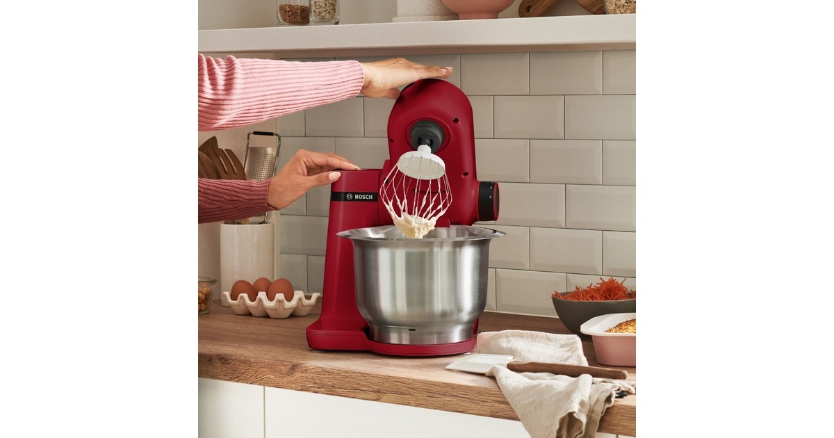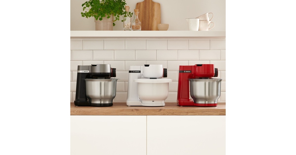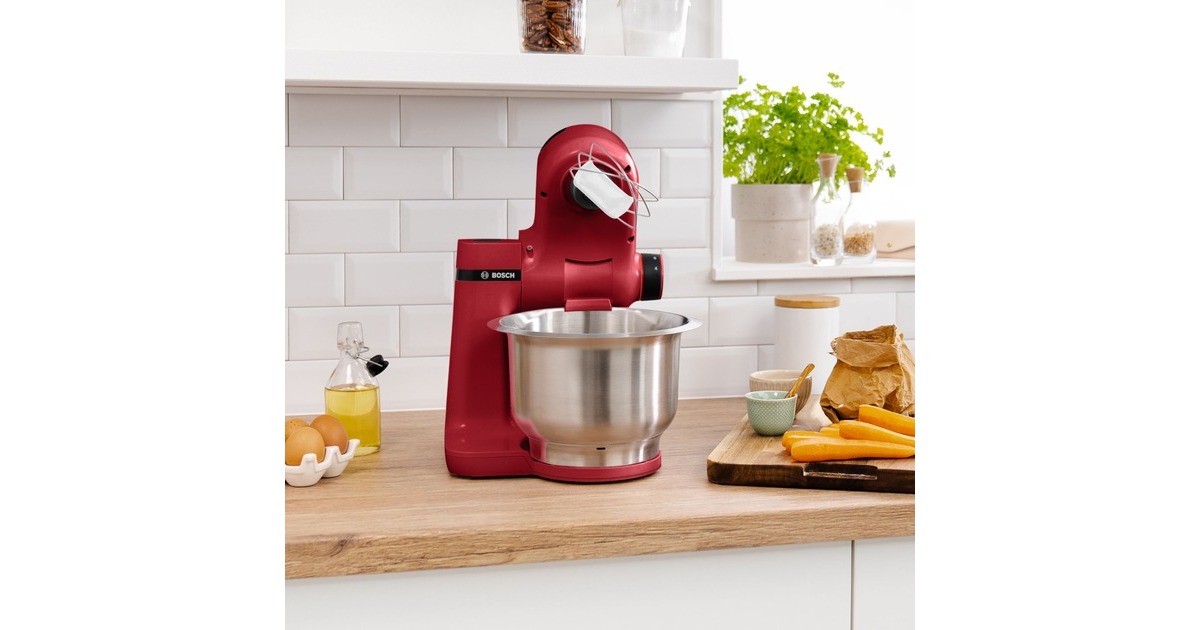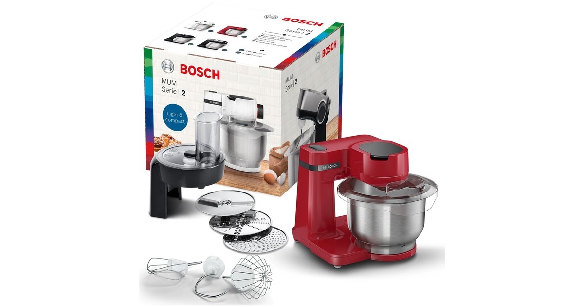 Die kompakte Küchenmaschine der MUM2 Serie von Bosch ist ein Universaltalent in der Küche. Der starke 700 Watt sorgt mit 3D PlanetaryMixing für schnelle Back- und Kochergebnisse auch bei schweren Teigen. Der Multifunktionsarm verfügt über drei Antriebe an verschiedenen Positionen. Durch das vielfältige Zubehör macht Kochen und Backen wieder richtig Spaß. Das Gerät nimmt einem alle Vorarbeiten ab, vom einfachen Mixen über Teigrühren, bis hin zum Zerkleinern. Die MUMS2ER01 besitzt eine Edelstahl-Rührschüssel mit insgesamt 3,8 Litern Fassungsvermögen und mit spezieller Innenform für die perfekte Teigzubereitung (Verarbeitungsmenge: bis zu 2,4 kg Rührteig oder 1,7 kg Hefeteig). Im Lieferumfang ist dazu noch ein Durchlaufschnitzler inkl. 3 Edelstahlscheiben enthalten. Ein transparenter Deckel mit Einfüllöffnung sorgt für einfaches und sauberes Vermischen und Nachfüllen der Zutaten. Gummisaugfüße sorgen bei der MUMS2ER01 für einen sicheren Stand.Art.-Nr.: 1674289