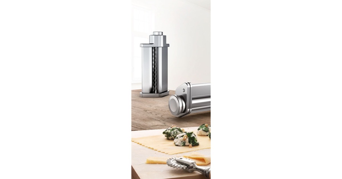Einfach und schnell – selbstgemachte Pasta. Mit den Profi-Pastavorsätzen für Lasagneplatten und Tagliatelle gelingt frische Pasta im Handumdrehen. Einfach zu montieren dank der Farbcodierung am Zubehör und am passenden Geräte-Anschluss. Inklusive Adapter für die einfache Montage.Art.-Nr.: 1359871