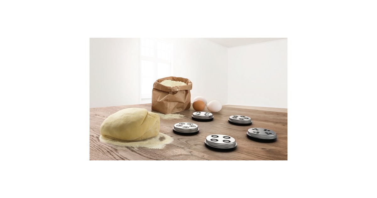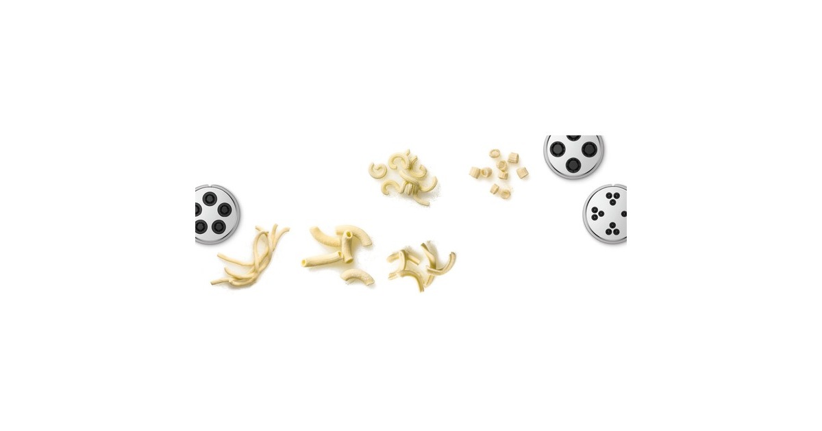 Einfach und schnell zur selbstgemachten Pasta. Mit den Pasta-Scheiben zur Herstellung vieler Nudel-Variationen (Ditaloni rigati, Cellentani, Rigatoni, Fussili, Maccheroni) gelingt frische Pasta im Handumdrehen. Die Scheiben passen für den Fleischwolf der Küchenmaschine Bosch OptiMUM.Art.-Nr.: 1359886