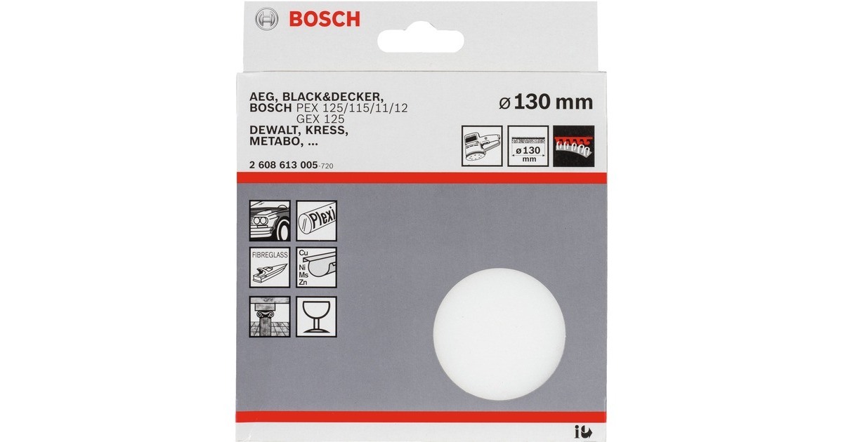 Der Bosch Polierschwamm 130mm eignet sich zum Hochglanzpolieren leicht verschmutzter, zerkratzter oder vorpolierter Oberflächen mit Politur, oder zum Einarbeiten von Wachs und zum Polieren von verwitterter Farbe, Stein, Kunststoff und Nichteisenmetallen. Er lässt sich mit Exzenterschleifern verschiedener Marken verwenden.Art.-Nr.: 1225094