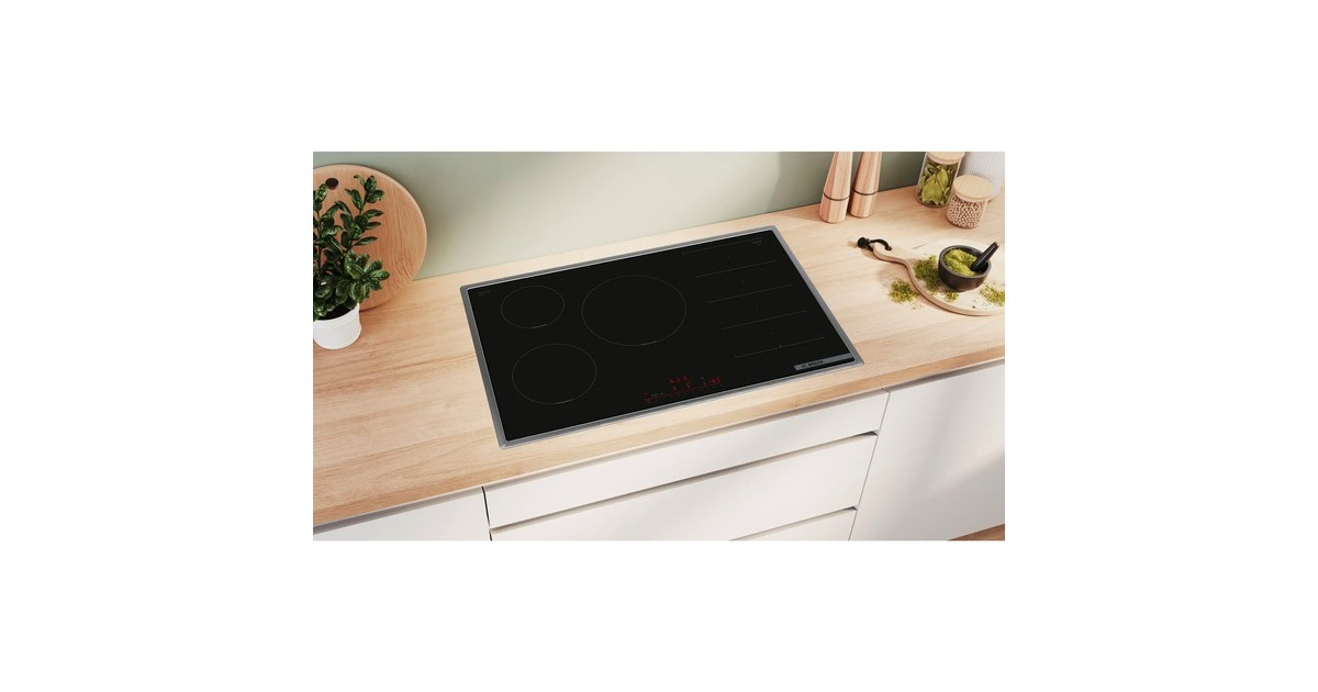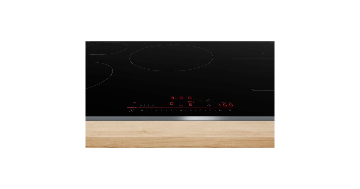 Das autarke Induktionskochfeld PXV845HC1E von Bosch stellt fünf Kochzonen mit 17 Leistungsstufen und PowerBoost-Funktion zum Kochen, Braten und Dünsten zur Verfügung. Dank Flex Induction lassen sich die zwei Kochfelder auf der rechten Seite zu einer großen, gleichmäßig erhitzten Oberfläche kombinieren und das Kochfeld erkennt die Größe und Position der Töpfe in dieser Zone automatisch. An der intuitiven DirectSelect-Bedienblende lassen sich die Kochzonen auswählen und die jeweiligen Leistungsstufen nach Wunsch individuell einstellen – direkt, schnell und einfach. Mit der Favoriten-Taste können ideale Kombination von Einstellungen, wie Leistungsstufe und Timer, gespeichert werden. Das PXV845HC1E lässt sich zudem smart via Home Connect steuern und in Kombination mit einer entsprechenden Dunstabzugshaube passt sich diese automatisch dem Kochfeld an. In puncto Sicherheit überzeugt das PXV845HC1E mit einer Restwärmeanzeige, einer Kindersicherung und einer Sicherheits-Zeitabschaltung.Art.-Nr.: 100021583