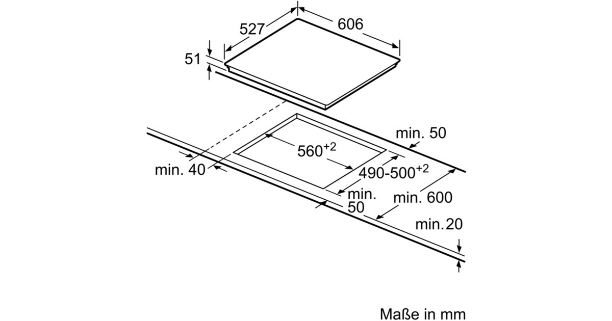 Min. Arbeitsplattenstärke: 30 mm; Anschlusswert: 7,4 kW |