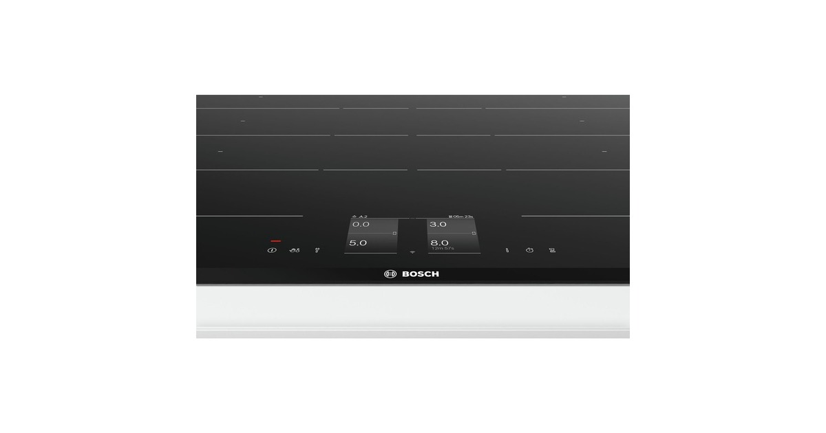 Das autarke Kochfeld Bosch PXY875KV1E überzeugt mit vier Induktions-Kochzonen mit PowerBoost-Funktion und einer leicht zu reinigenden Glaskeramik-Oberfläche. Die 17 Leistungsstufen sind über das TFT-TouchDisplay regelbar und der Timer mit Abschaltfunktion je Kochzone macht das Kochen und Braten für angehende Köche zur Leichtigkeit. Dank der FlexInductions-Zone ist noch mehr Flexibilität durch das Zusammenschalten der Kochzonen zu einer durchgehenden Fläche gegeben, die bei größeren Töpfen noch erweitert werden können. Weitere Features sind der PerfectFry Bratsensor für einen optimalen Bräunungsgrad des Bratguts dank Sensorsteuerung in fünf Leistungsstufen sowie die Fähigkeit zu Home Connect. In puncto Sicherheit lässt das PXY875KV1E mit einer Kindersicherung, einer 2-stufigen Restwärmeanzeige und einer automatischen Sicherheitsabschaltung keine Wünsche offen.Art.-Nr.: 1868239