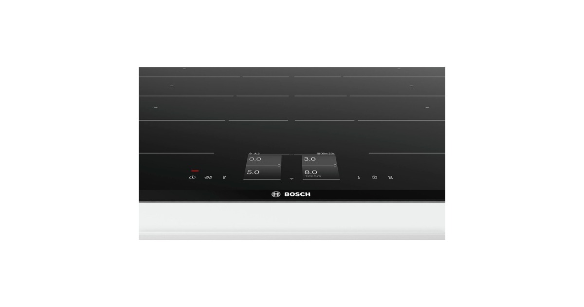 Das autarke Kochfeld Bosch PXY875KW1E überzeugt mit vier Induktions-Kochzonen mit PowerBoost-Funktion und einer leicht zu reinigenden Glaskeramik-Oberfläche. Die 17 Leistungsstufen sind über das TFT-TouchDisplay regelbar und der Timer mit Abschaltfunktion je Kochzone macht das Kochen und Braten für angehende Köche zur Leichtigkeit. Dank der FlexInductions-Zone ist noch mehr Flexibilität durch das Zusammenschalten der Kochzonen zu einer durchgehenden Fläche gegeben, die bei größeren Töpfen noch erweitert werden können. Weitere Features sind der PerfectFry Bratsensor für einen optimalen Bräunungsgrad des Bratguts dank Sensorsteuerung in fünf Leistungsstufen sowie die Fähigkeit zu Home Connect. In puncto Sicherheit lässt das PXY875KW1E mit einer Kindersicherung, einer 2-stufigen Restwärmeanzeige und einer automatischen Sicherheitsabschaltung keine Wünsche offen.Art.-Nr.: 1388835