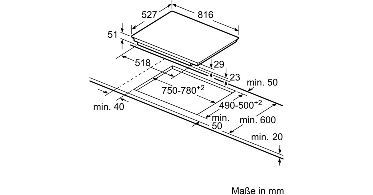 Breite: 816 mm x Höhe: 51 mm x Tiefe/Länge: 527 mm |