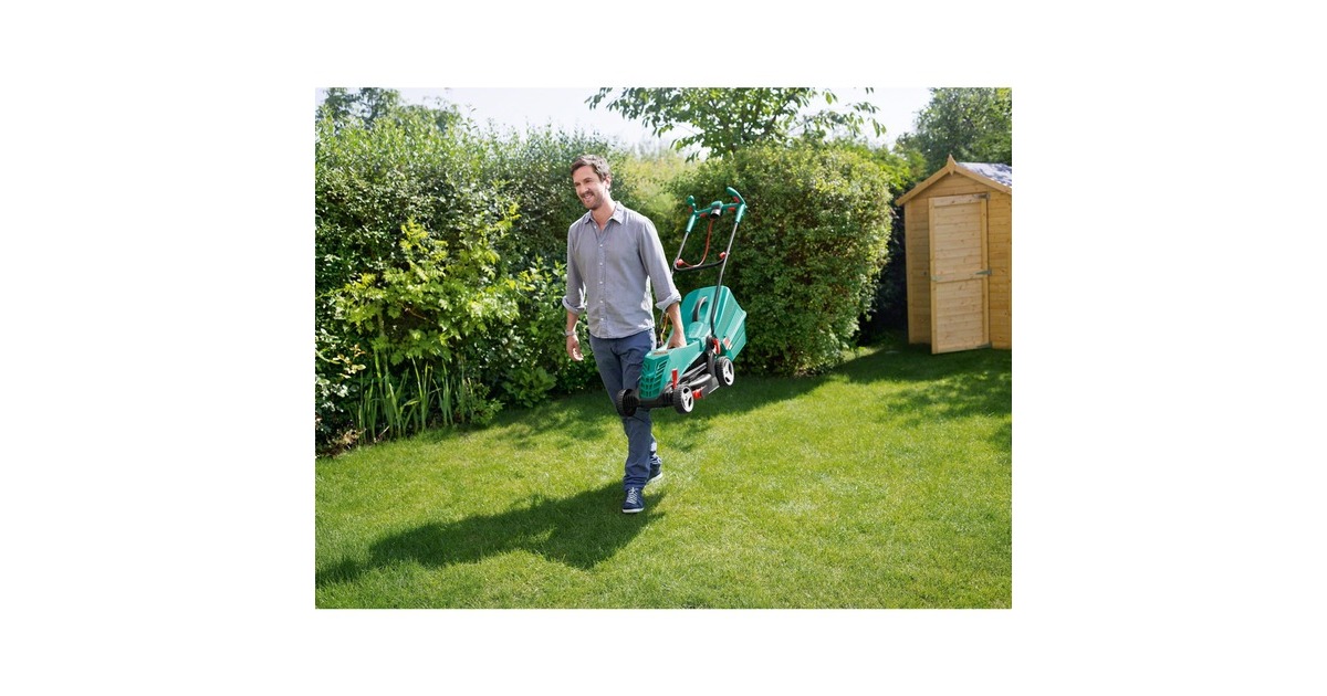 Der Bosch ARM 34 ist ein leistungsstarker Elektro-Rasenmäher mit 34 cm Schnittbreite. Sein 1.300-Watt-Powerdrive-Motor gewährleistet einen zuverlässigen Schnitt, selbst unter schwierigsten Umständen. Ergonomisch geformte und verstellbare Griffe (Ergoflex-System) sorgen für eine bessere Körperhaltung und Entlastung der Muskeln beim Mähen. Der innovativer Rasenkamm des ARM 34 ermöglicht randnahes Schneiden an Mauern, Beeten und Rasenkanten. Das relativ leichte Gewicht und der integrierte Tragegriff ermöglichen einen einfachen Transport. Zur platzsparenden Aufbewahrung lässt sich der Holm einklappen und die Grasfangboxen stapeln.Art.-Nr.: 1130486