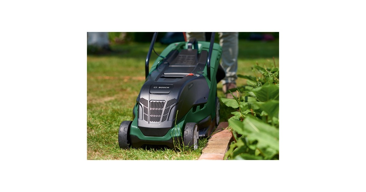 Der Rasenmäher UniversalRotak 450 von Bosch zeichnet sich durch praktische Funktionen und mühelose Bedienung aus. Die Schnitthöhe kann per einfachem Schalterdruck in sechs Stufen eingestellt werden. Die 40-Liter-Grasfangbox hat ausreichende Kapazität, und die einzigartigen Rasenkämme mähen das Gras perfekt bis an die Kante. Der Korb ist faltbar, dadurch einfach im Aufbau und flach zusammengefaltet platzsparend lagerbar. Eine Füllstandsanzeige verhindert das Überladen beim Mähen. Das "LeafCollect"-Messer des UniversalRotak 450 sammelt und häckselt auch Laub für eine einfache Entsorgung mit dem Grasfangkorb. Die Bosch "ErgoFlex"-Griffe reduzieren die Belastung von Armen und Rücken durch eine perfekte Haltung beim Mähen. Mehrere Verstellschalter ermöglichen eine individuelle Anpassung und optimalen Komfort.Art.-Nr.: 1624036