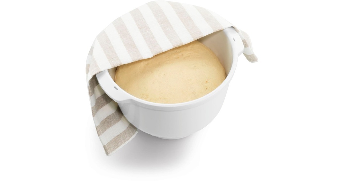 Die Rührschüssel Bosch MUZ5KR1 hat 3,9 Liter Volumen und eine spezielle Innenform für die optimale Verarbeitung diverser Teige bis zu 2 kg Rührteig oder 1,5 kg Hefeteig. Besonders Hefeteig gelingt stets optimal dank der wärmedämmenden Eigenschaften des Kunststoffs.Art.-Nr.: 1252055