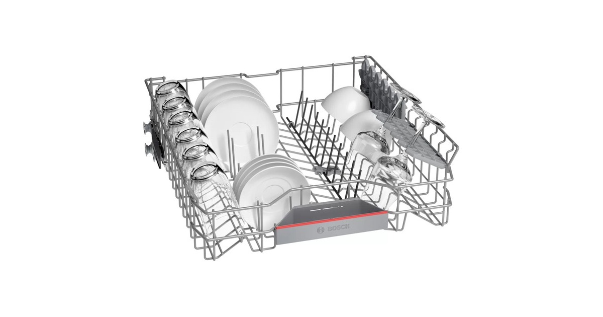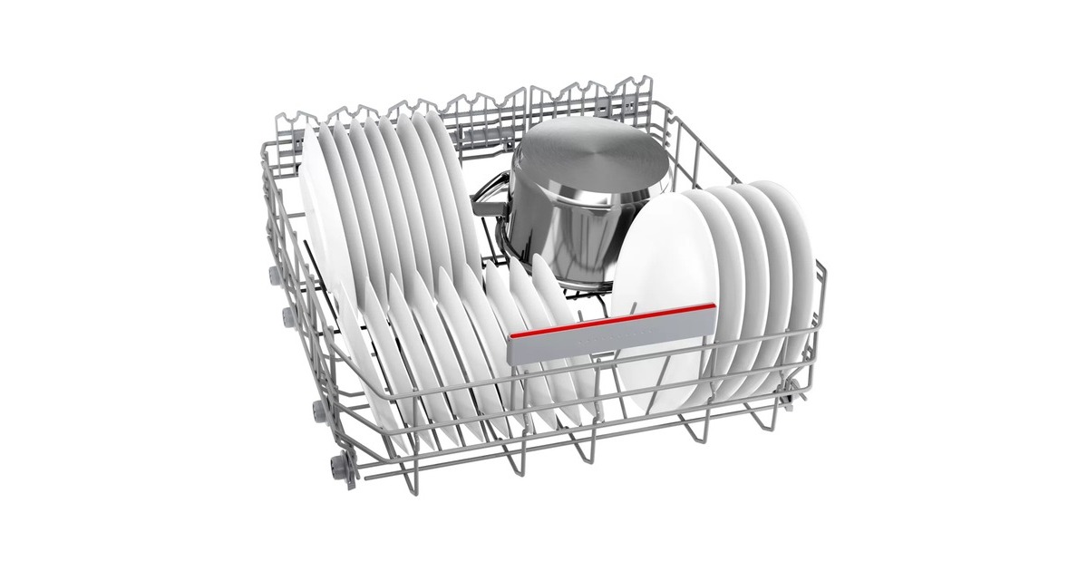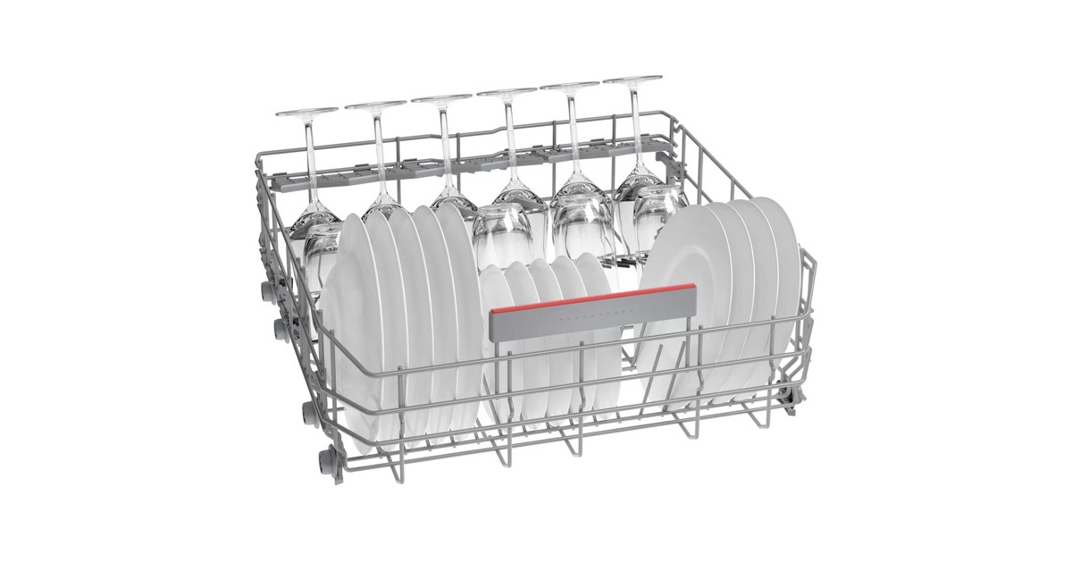 höhenverstellbarer Oberkorb mit Rackmatic (3-stufig), 2x umklappbare Stachelreihen, 2 Tassenablagen |