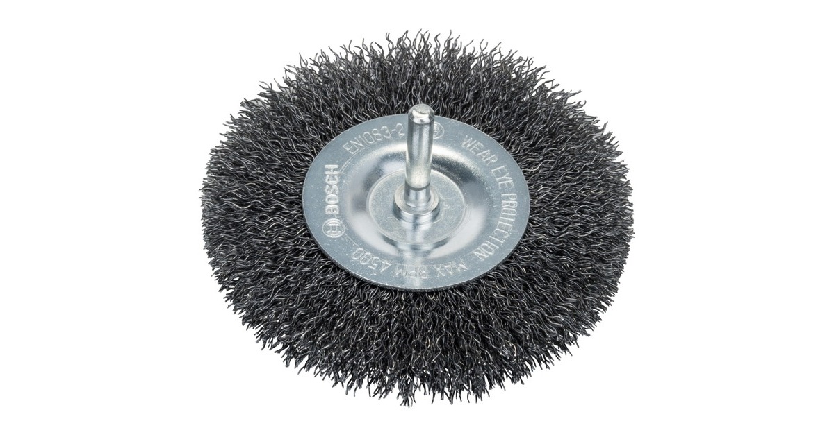 Die Scheibenbürste 1609200273 von Bosch liefert ein feines Oberflächenfinish. Die Bürste ist mit gewellten Stahldraht ausgestattet und eignet sich besonders für leichte bis mittelschwere Reinigungsarbeiten mit hoher Drehzahl auf kleinen Flächen. Sie entfernt Anlauffarbe von Schweißnähten und reinigt kleinere Flächen aus Eisenmetall und Nichteisenmetall sowie Kanten und Fugen. Außerdem eignet sich die Scheibenbürste zum Entfernen von Rost oder Farbe, zum Schruppen und Mattschleifen. Sie ist für Bohrmaschinen mit 6mm Schaft geeignet.Art.-Nr.: 1680926