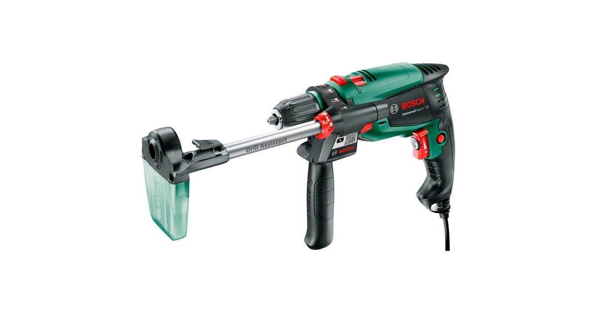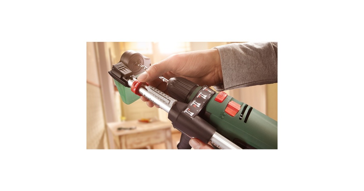 Die Schlagbohrmaschine UniversalImpact 700 von Bosch eignet sich perfekt für bequemes Präzisionsbohren in Mauerwerk, Holz, Beton und Metall. Das Schnellspannbohrfutter sorgt für einen schnellen und leichten Zubehörwechsel durch einfache Spindelarretierung auf Knopfdruck. Die Bosch Electronic Speed Control ermöglicht die Anpassung der benötigten Drehzahl über den großflächigen Schalter. Die 1,6 kg leichte kompakte UniversalImpact 700 ermöglicht mit ihrem ergonomischen Design auch müheloses Bohren über Kopf. Der Zusatzhandgriff gewährleistet auch bei hohem Anpressdruck eine hervorragende Kontrolle beim Arbeiten. Auch für Schraubarbeiten lässt sie sich dank des Rechts-/Linkslaufs leicht einsetzen. Die UniversalImpact 700 mit hoher Bohrleistung und vielfältigen Anwendungsmöglichkeiten für Heimwerker ist der ideale Helfer für größere Bohr- und Schraubarbeiten, z.B. beim Befestigen von Bad-Installationen oder beim festen Verschrauben der Gartenhütte mit massiven Vierkanthölzern und wetterfesten Brettern. Um Bohrstaub direkt am Bohrloch aufzufangen und die richtige Bohrtiefe einzustellen, kann die EasyImpact mit dem mitgelieferten Drill Assistant kombiniert werden.Art.-Nr.: 1620558