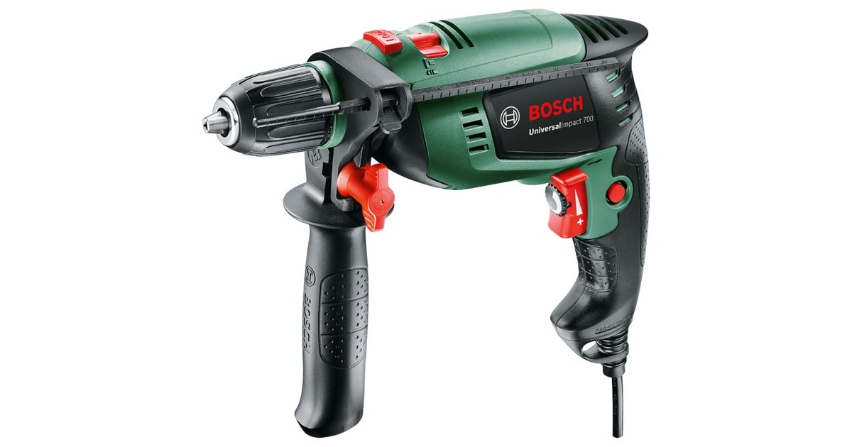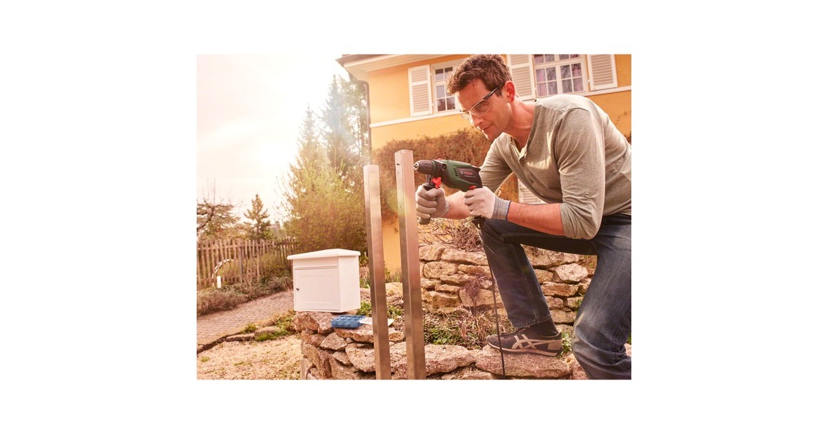 Die Schlagbohrmaschine UniversalImpact 800 von Bosch eignet sich perfekt für Präzisionsbohren in Mauerwerk, Holz, Beton und Metall. Das Schnellspannbohrfutter mit automatischer Spindelarretierung sorgt für einen schnellen und leichten Zubehörwechsel. Die Bosch Electronic Speed Control ermöglicht die Anpassung der benötigten Drehzahl über den großflächigen Schalter. Die Bosch Constant Electronic sorgt dafür, dass die Drehzahl auch unter Belastung konstant gehalten wird und ermöglicht einen kontinuierlichen Arbeitsfortschritt. Die 1,8 kg leichte kompakte UniversalImpact 800 ermöglicht mit ihrem ergonomischen Design auch müheloses Bohren über Kopf. Der Zusatzhandgriff gewährleistet auch bei hohem Anpressdruck eine hervorragende Kontrolle beim Arbeiten. Die innovative Bosch Kickback Control schaltet die Maschine sofort ab, falls der Bohrer im Material verkantet. Damit wird das Verletzungsrisiko beim Arbeiten minimiert. Auch für Schraubarbeiten lässt sie sich dank des Rechts-/Linkslaufs leicht einsetzen. Die UniversalImpact 800 mit hoher Bohrleistung und vielfältigen Anwendungsmöglichkeiten für Heimwerker ist der ideale Helfer für anspruchsvolle Bohr- und Schraubarbeiten und größere Projekte.Art.-Nr.: 1620562