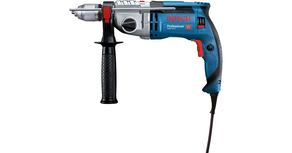 Die Bosch Schlagbohrmaschine GSB 24-2 Professional ist eine der Stärksten ihrer Klasse mit Constant-Electronic und Kickback Control für härteste Anwendungen. Ein Schnellspannbohrfutter mit Auto-Lock ermöglicht einen einfachen und schnellen Werkzeugwechsel. Die Schlagbohrmaschine GSB 24-2 Professional ist mit einem 1.100 Watt starken Motor und einem 2-Gang-Getriebe ausgestattet. Über den großen Schalter und das Stellrad lässt sich die Drehzahl ganz einfach zwischen 0 und maximal regulieren, was ein dosiertes Arbeiten ermöglicht, beispielsweise beim Anbohren glatter Flächen oder beim Eindrehen von Schrauben. Die Bosch-Constant-Electronic sorgt dafür, dass die Drehzahl auch unter Belastung automatisch konstant gehalten wird. Mit dem Rechts-/Linkslauf lassen sich auch Schraubarbeiten erledigen.Art.-Nr.: 1498022