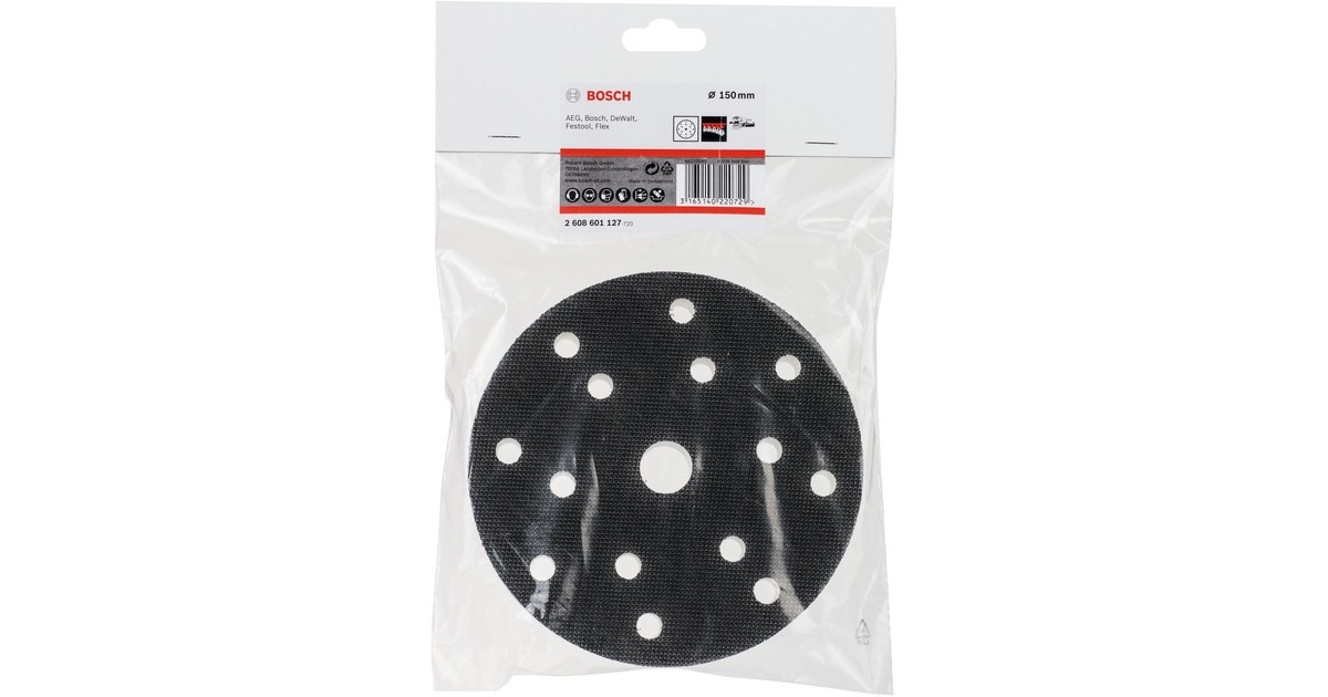 Der Bosch Adapter 150mm für Exzenterschleifer hat 14 Löcher und eine Klett-Schleifpapieraufnahme. Er eignet sich als zusätzliche dämpfende Zwischenlage für besonders weiches Arbeiten, z.B. zum Polieren, Reinigen oder Strukturieren von Konturen und gewölbten Oberflächen.Art.-Nr.: 1456775