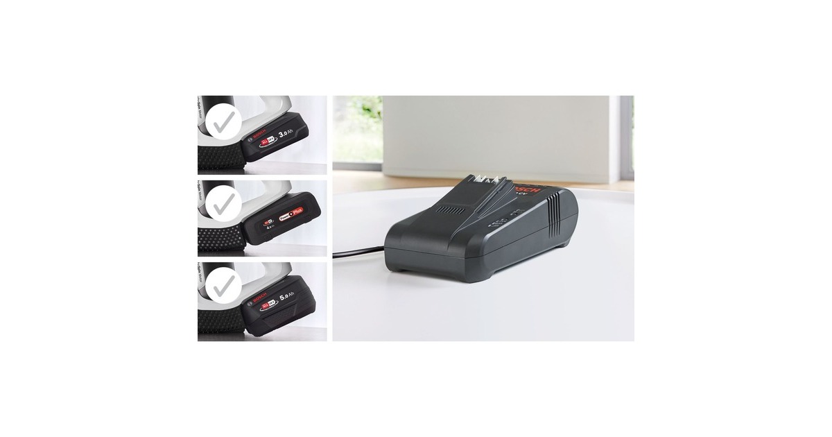 Das Schnellladegerät BHZUC18N von Bosch bietet eine schnelle Lademöglichkeit für die austauschbaren 18 Volt POWER FOR ALL Akkus und ermöglichen eine längere Laufzeit für den Bosch Unlimited Staubsauger. Das Ladegerät lädt einen 3,0 Ah Akku in ca. 46 Minuten wieder auf. Es ist kompatibel mit der Unlimited Serie 8 (BBS8…, BCS8…, BKS8…, BSS8…, BBS1…, BCS1…, BSS1...), Unlimited 7 (BBS7…, BCS7…, BKS7…, BSS7…) und Unlimited Serie 6 (BBS6…, BCS6…, BKS6…, BLS6…, BSS6…).Art.-Nr.: 1586332