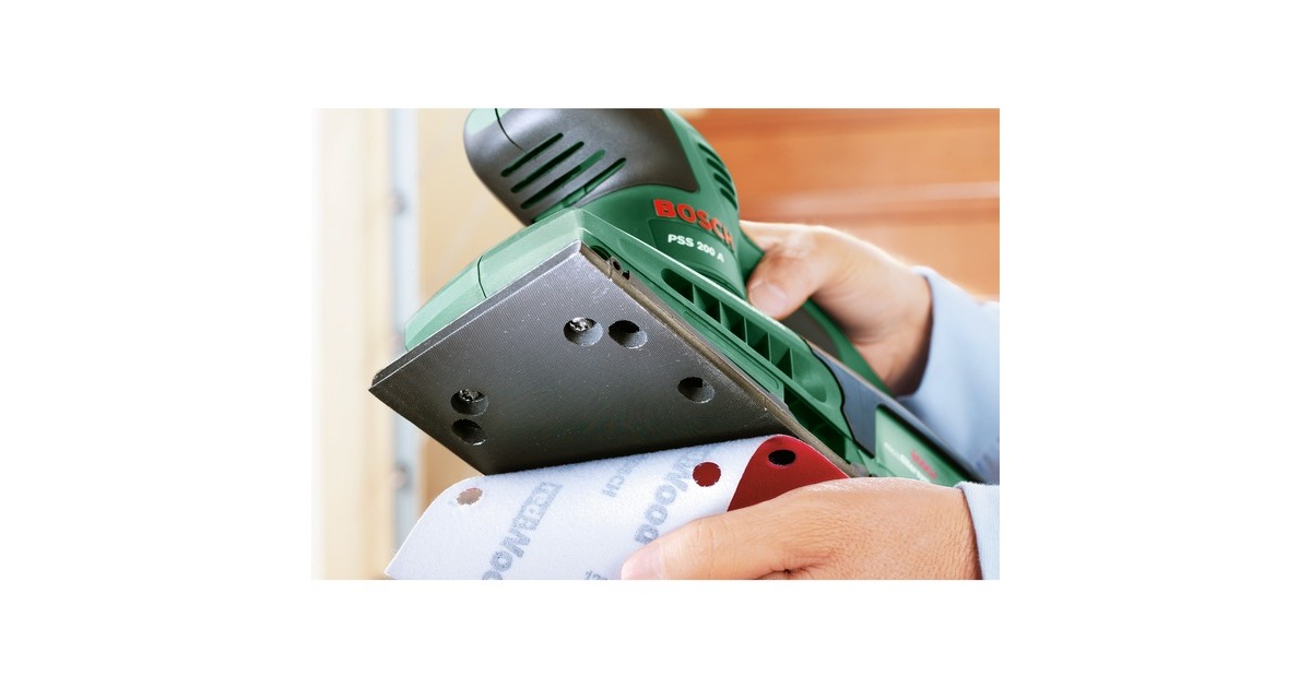 Der Bosch Schwingschleifer PSS 200 A erreicht schnell glatte Oberflächen von hoher Qualität. Der zuverlässige 200-Watt Motor ist ideal zur Bewältigung verschiedenster Schleifarbeiten. Das ergonomische Design kombiniert mit der Option einer ein- oder zweihändigen Werkzeugführung sorgen für angenehmes Arbeiten. Bosch Low Vibration ist eine schlagabsorbierende und vibrationsdämpfende Funktion, die der Ermüdung entgegenwirkt und ein bequemes, gleichmäßiges und einfaches Arbeiten bei umfangreichen Anwendungen ermöglicht. Der Schwingschleifer PSS 200 A eignet sich zum Schleifen von lackierten Oberflächen wie Tischen und Regalen, von Holzparkettböden, Treppen und Holzdielenböden, von gestrichenen Oberflächen und vielem mehr. Für einen sauberen Arbeitsbereich wird während des Schleifens der Staub automatisch in die abnehmbare Microfilter-Staubbox gesaugt. Der PSS 200 A kann aber auch an einen Staubsauger angeschlossen werden.Art.-Nr.: 1828078