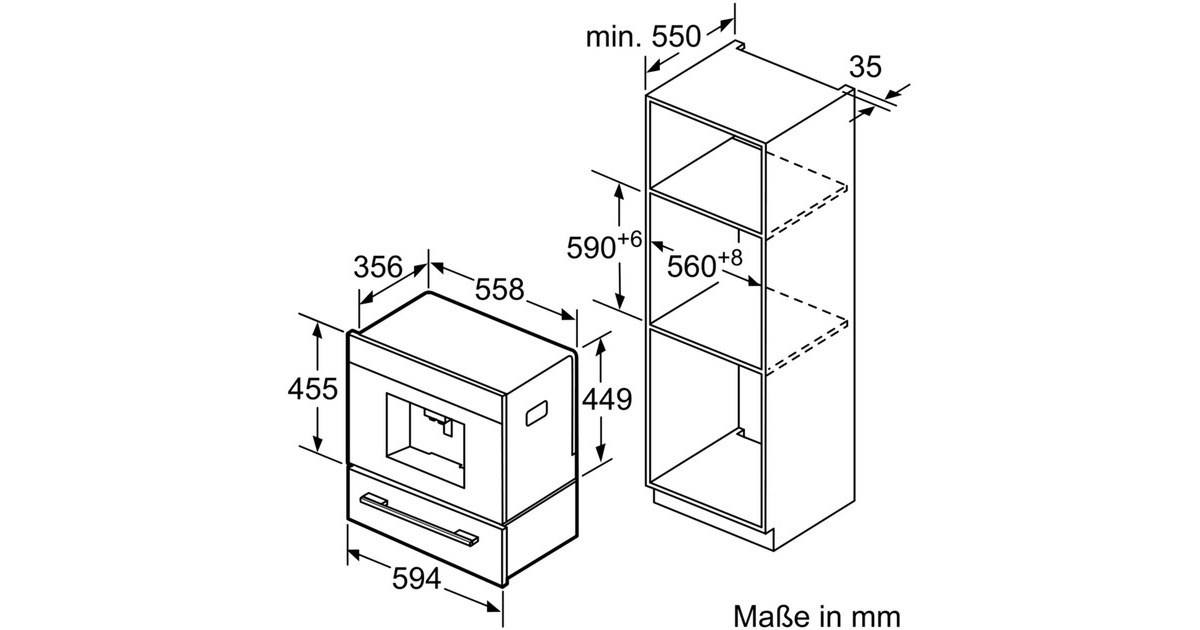 Nischenmaße: Breite: 558mm x Höhe: 449 mm x Tiefe: 356 mm |