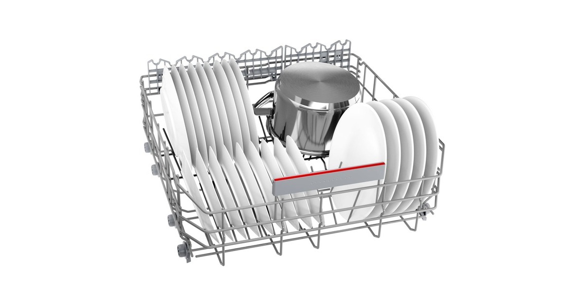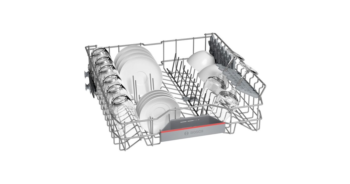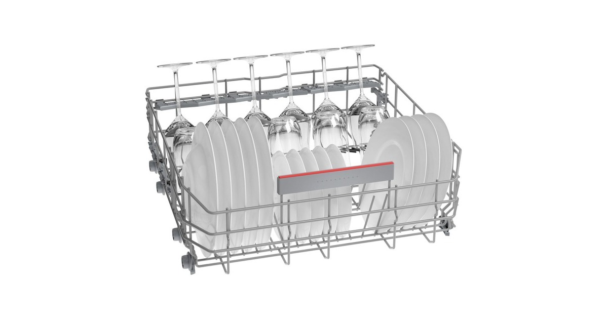 höhenverstellbarer Oberkorb mit Rackmatic (3-stufig), 2x umklappbare Stachelreihen, 2x Tassenablagen |