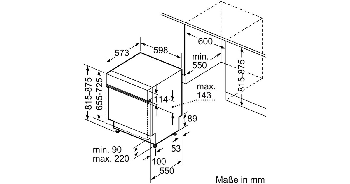 Innenbehälter/ Boden: Edelstahl/Edelstahl, höhenverstellbare Füße nur vorne, Höhenverstellung Füße maximal 60 mm, verstellbarer Sockel: horizontal und vertikal |