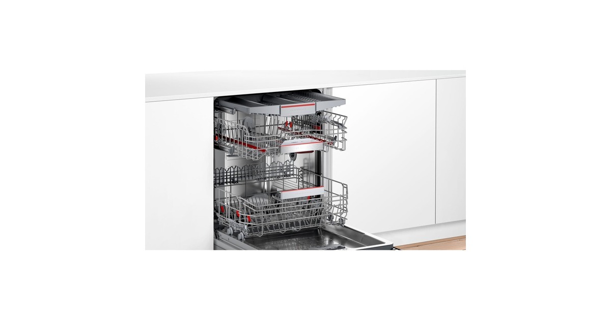 Max Flex Korbsystem mit farbigen Touchpoints, Extra Clean Zone, VarioSchublade, Komfortrollen im Unterkorb und der 3. Beladungsebene, farbige Anti-Rutsch-Beschichtung im Oberkorb, Korbstopper (Rack Stopper) gegen ein Überrollen des Unterkorbes |