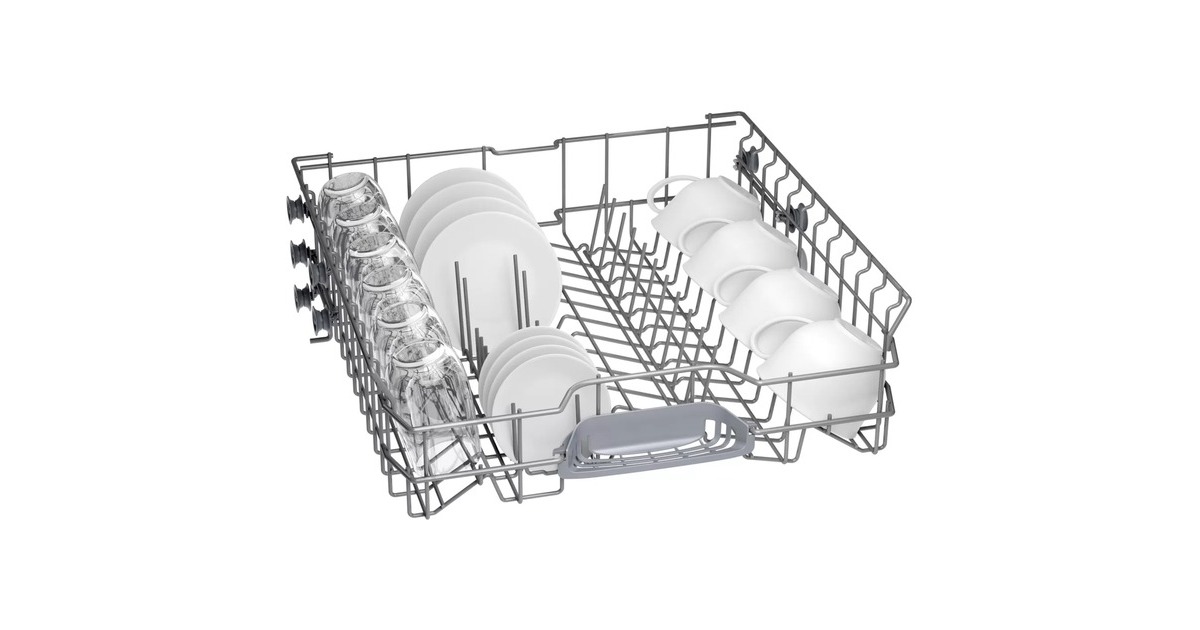 höhenverstellbarer Oberkorb, 2 Tassenablagen mit weicher Silikon Beschichtung |
