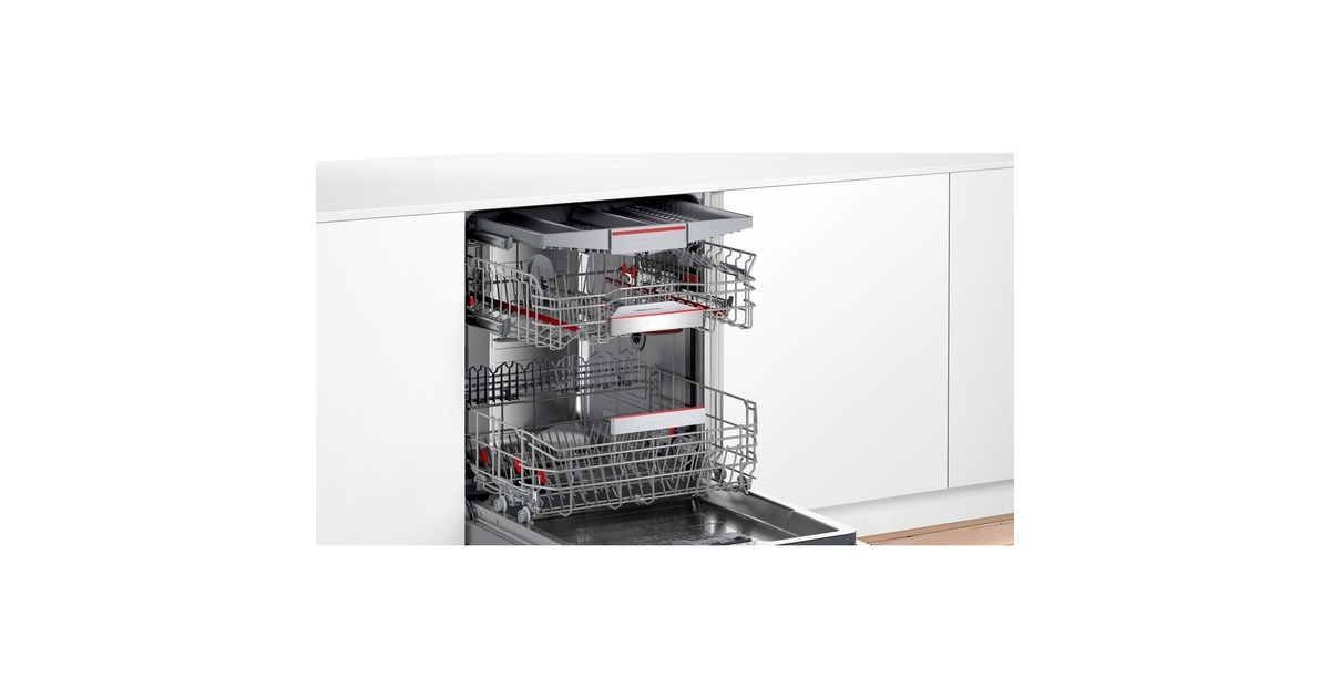 Max Flex Korbsystem mit farbigen Touchpoints, Extra Clean Zone, VarioSchublade, Komfortrollen im Unterkorb und der 3. Beladungsebene, farbige Anti-Rutsch-Beschichtung im Oberkorb, Korbstopper (Rack Stopper) gegen ein Überrollen des Unterkorbes |