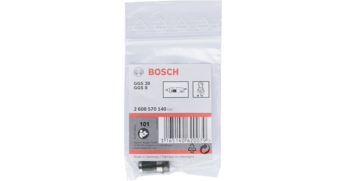 Die Bosch Spannzange 2608570140 eignet sich für die Geradschleifer GGS 8 C, GGS 28, GGS 28 C, GGS 28 CE, GGS 28 LC, GGS 28 LCE und GGS 28 LPC Professional. Sie fasst Werkzeugeinsätze mit einem Durchmesser von 1/4".Art.-Nr.: 1433263