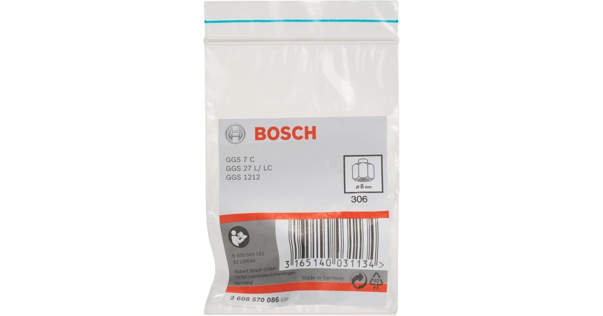 Die Bosch Spannzange mit Spannmutter eignet sich für Bosch Professional Geradschleifer. Die Werkzeugaufnahme fasst Werkzeugeinsätze mit einem Durchmesser von 8mm.Art.-Nr.: 1163366| EAN | 3165140031134 |