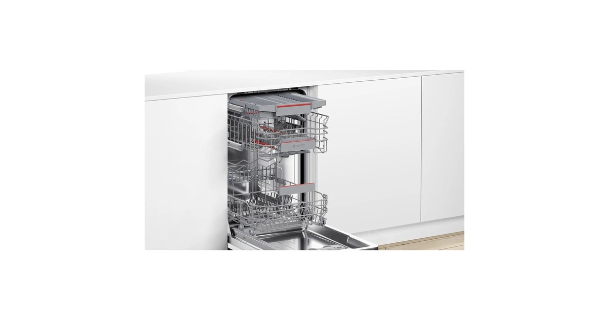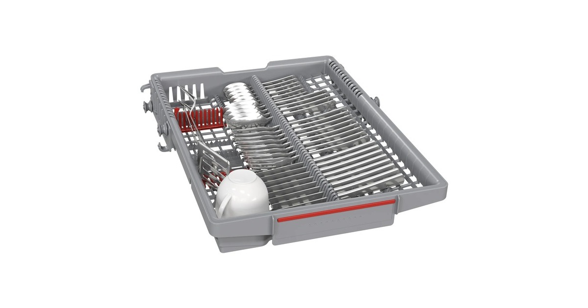 Komfortrollen, Korbstopper, 2x Umklappbare Stachelreihen,Tassenablage (2-teilig), Gläseranlagebügel |