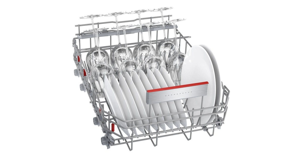 Komfortrollen, Korbstopper, 4x Umklappbare Stachelreihen, Tassenablage (2-teilig), Gläseranlagebügel |