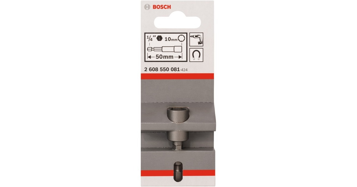 Der Bosch Steckschlüssel mit 1/4" Außensechskantschaft besitzt einen integrierten Dauermagneten und hat eine Länge von 50 mm. Die Schlüsselweite beträgt 10 mm.Art.-Nr.: 1163255