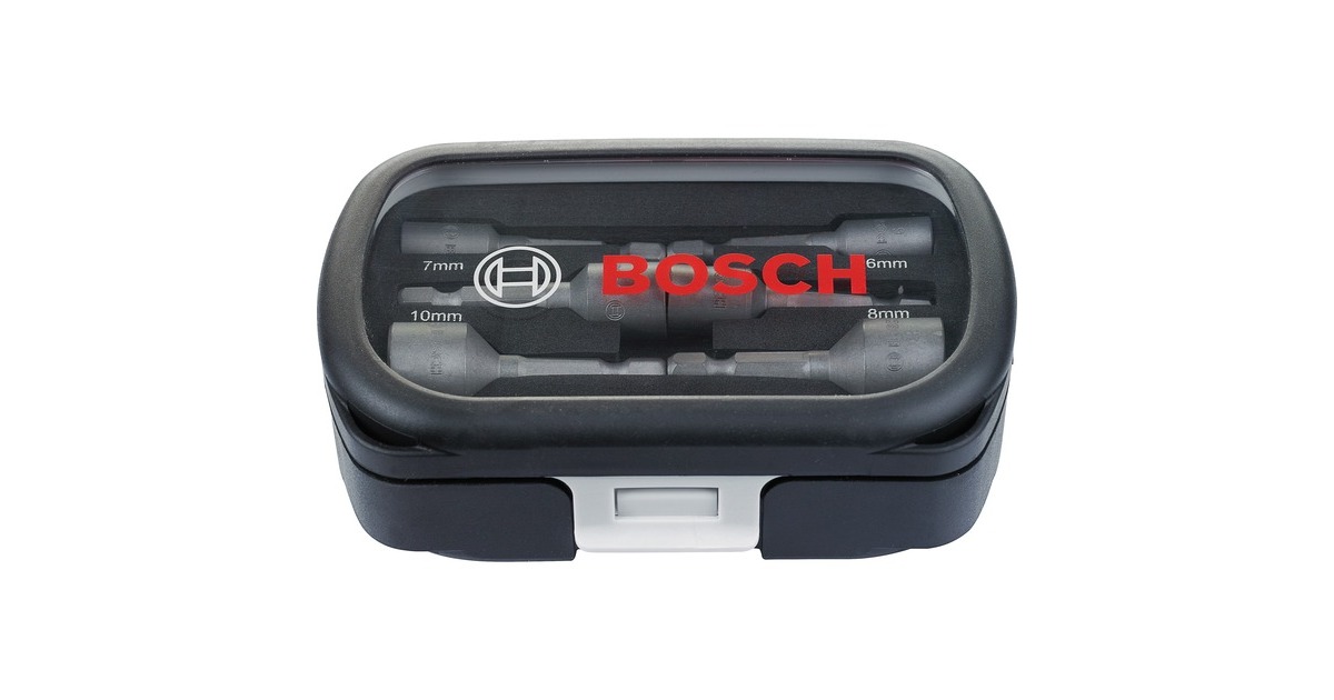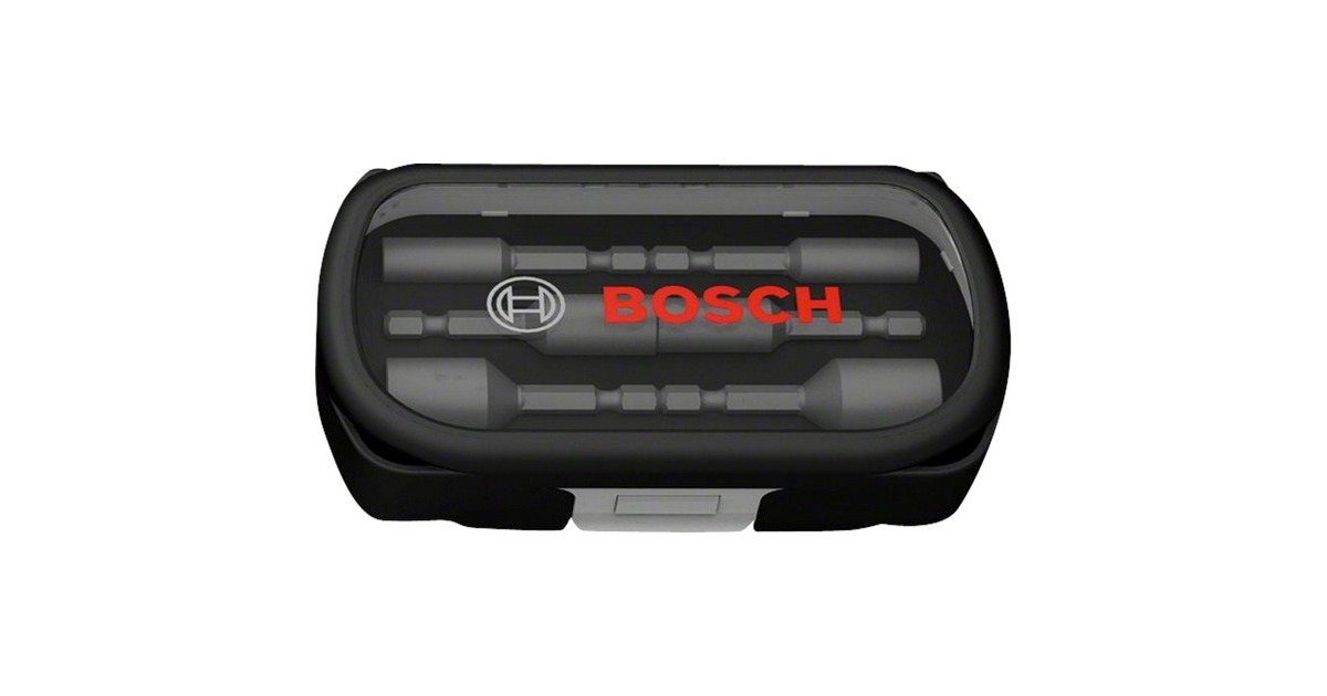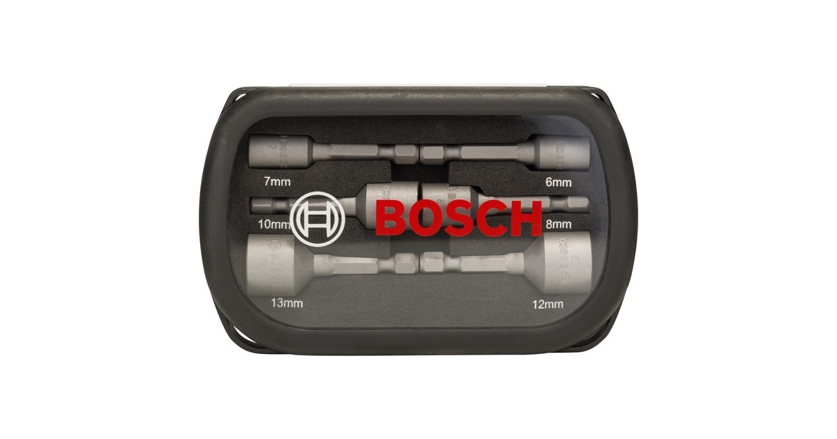 Das 6-teilige Steckschlüsseleinsatz-Set 2608551079 von Bosch beinhaltet die Schlüsselweiten 6mm, 7mm, 8mm, 10mm, 12mm und 13mm in jeweils 50mm Länge. Sie eignen sich für allgemeine Schraubarbeiten mit Schraubendrehern, Bohrschraubern, Bohrmaschinen und Schlagschraubern. Der S2-modifizierte Stahl und ein optimierter Wärmebehandlungsprozess ergeben überdurchschnittliche Härte der Stecknüsse. Der Sechskant-Schaft ermöglicht eine maximale Kraftübertragung ohne Durchrutschen in Standard-Bohrfuttern und in Sechskantaufnahmen. Das Set wird in einer praktischen Kunststoff-Box mit Klarsichtdeckel und Schaumstoffeinlage geliefert.Art.-Nr.: 1076772