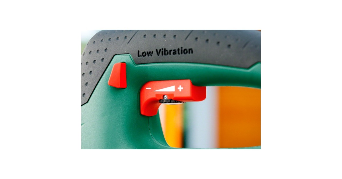 Bosch-"Low Vibration" mit linearem Massenausgleich, Schnittlinienkontrolle "Cut Control" bietet eine sichere Führung |