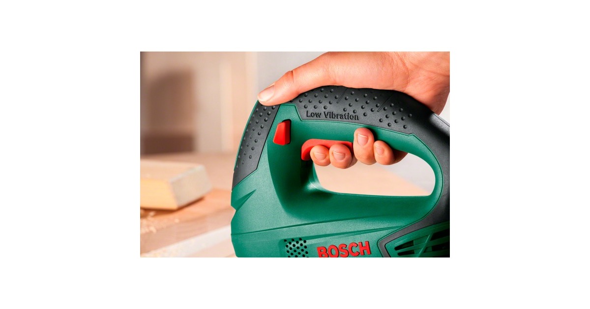 Die Bosch Stichsäge PST 650 überzeugt mit kompakter Größe, geringem Gewicht und hervorragender Handlichkeit. Sie minimiert mit dem Bosch-"Low Vibration" mit linearen Massenausgleich die Vibrationen und gewährleistet so ein sicheres und komfortables Arbeiten. Mit der PST 650 lassen sich enge Kurven und geschwungene Linien sägen, aber auch Geraden- und Gehrungsschnitte. Durch den Softgrip und die erhebliche Verminderung von Vibrationen liegt sie griffsicher in der Hand und lässt sich auch von weniger erfahrenen Heimwerkern gut handhaben. Dabei gewährt die zuschaltbare Späneblasfunktion jederzeit klare Sicht auf die Schnittlinie, so dass die Schnitte sehr einfach kontrolliert werden können. Die stabile Fußplatte aus Stahl ermöglicht dabei eine sichere Führung des Sägeblatts. Für Gehrungsschnitte bis zu 45° kann sie einfach verstellt werden. Das Bosch-SDS sorgt für einen mühelosen und sicheren Sägeblattwechsel in Sekundenschnelle, ohne zusätzliches Werkzeug. Die PST 650 eignet sich für Schnitte bis zu 65mm im 45°- bis 90°-Winkel in verschiedenen Materialien wie Holz, Laminat, Aluminium oder Kunststoff.Art.-Nr.: 1620846